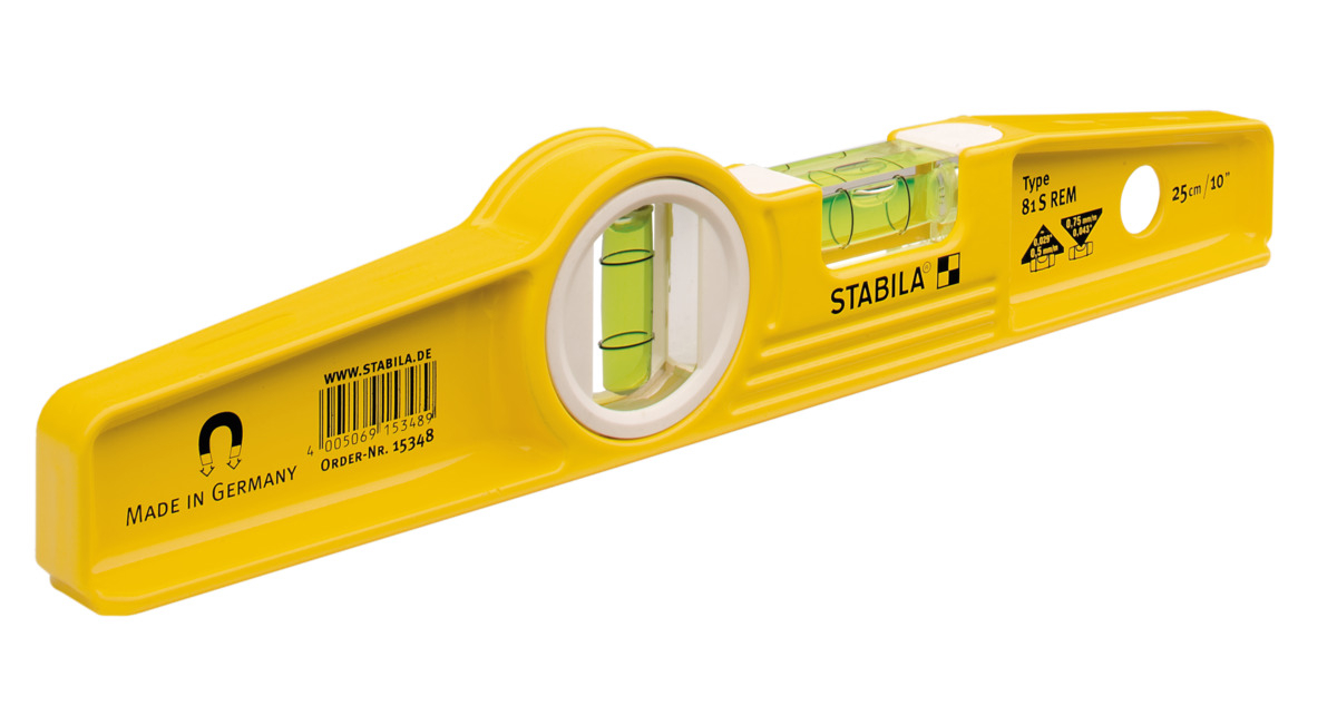 Dieses kompakte Modell verfügt über ein Aluminium-Druckgussprofil mit abgeschrägter Form, das es zu einer der robustesten Wasserwaagen von STABILA macht. Mit diesem Modell haben Sie immer freie Hände beim Ausrichten und Justieren von Bauelementen an metallischen Oberflächen. Die 81 S REM Torpedo ist mit einem Seltenerd-Magnetsystem ausgestattet, das für optimale Haftung sorgt. Libellen und gefräste Messfläche werden im Produktionsprozess exakt zueinander ausgerichtet und anschließend dauerhaft miteinander verbunden. So stellt STABILA sicher, dass die Wasserwaage auch nach vielen Jahren absolut präzise misst.