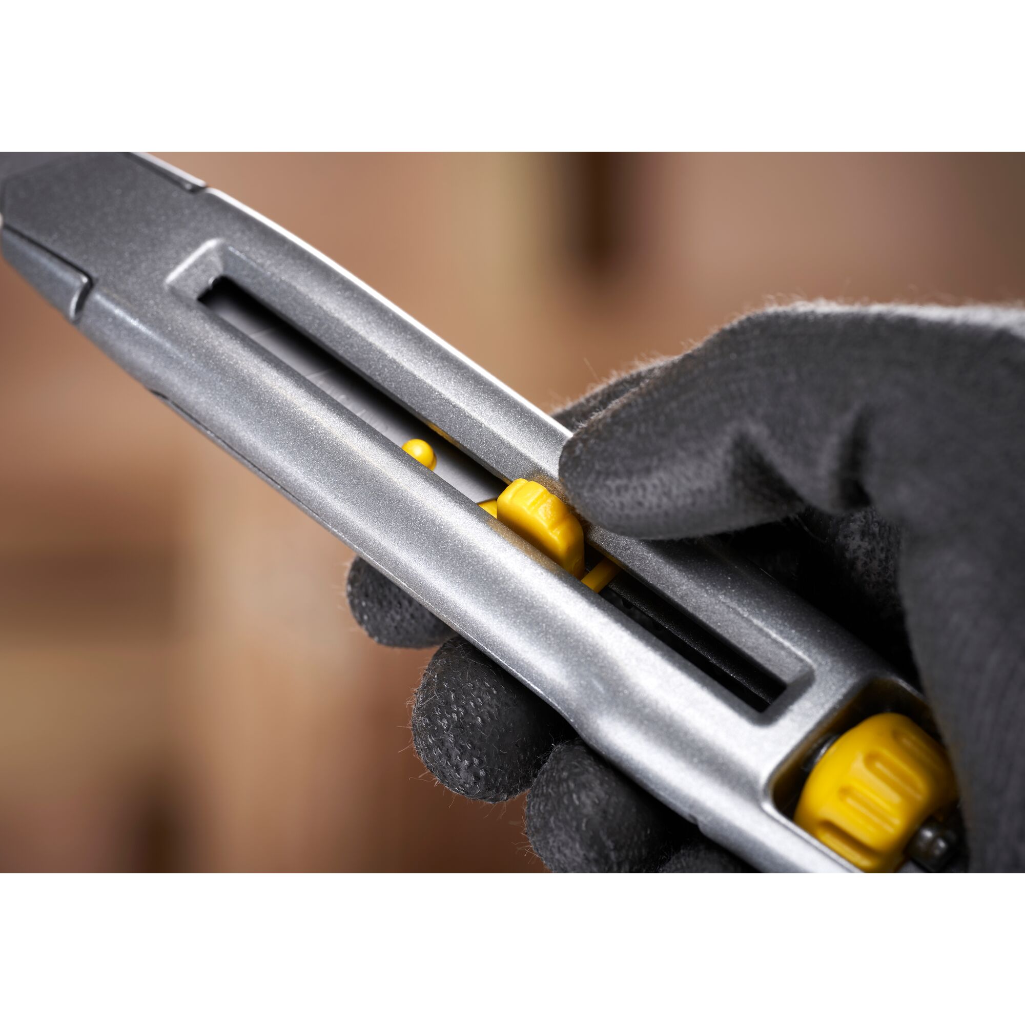 Druckgegossener Metall-Korpus für hohe Stabilität und,geringes Gewicht,Patentierte InterLock-Verbindung sichert die feststehende Klinge,durch überlappende Griffhälften,Einfacher Klingenwechsel ohne Werkzeug,Der an der Seite positionierte Klingenschieber rastet sicher ein,Mit 5 Carbideklingen