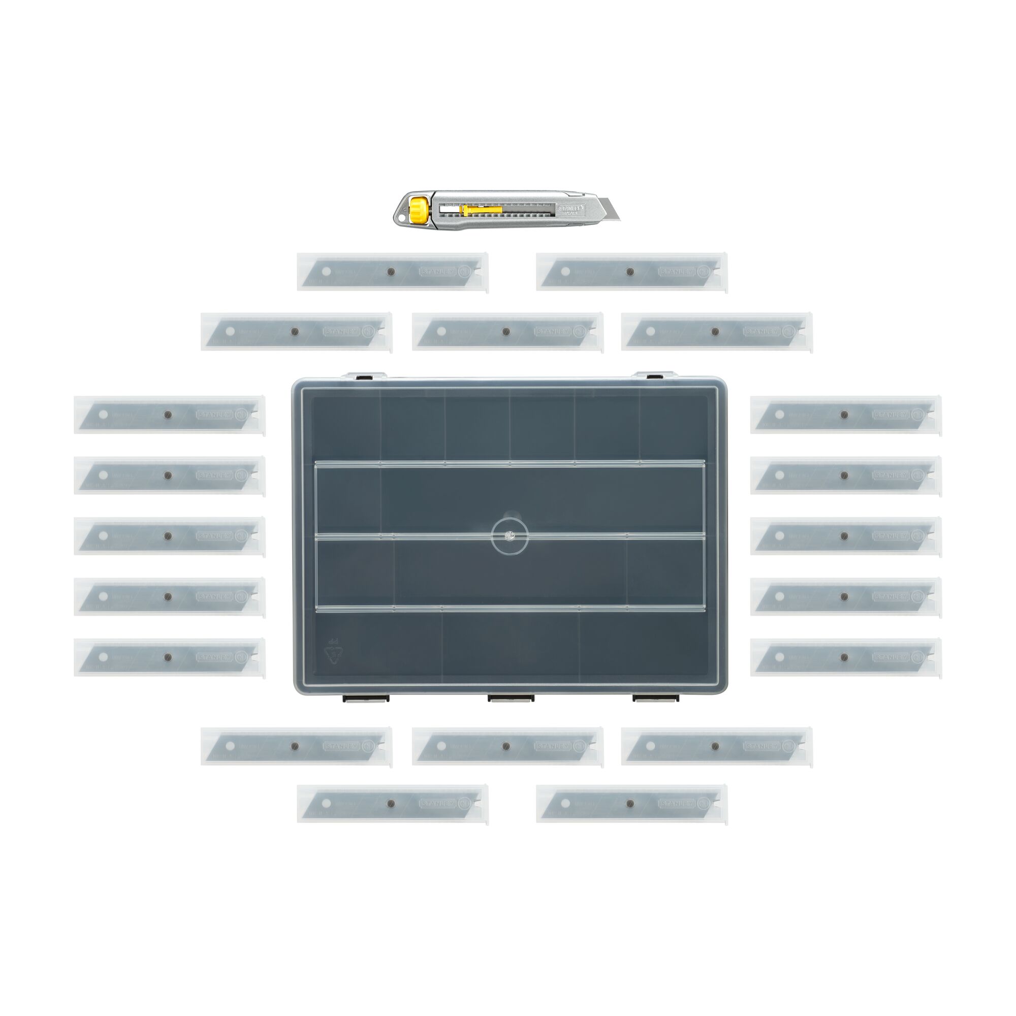 STANLEY Klingen-Vorratspack mit 200 Abbrechklingen 18mm und Interlock Cutter in praktischer Sortimentsbox