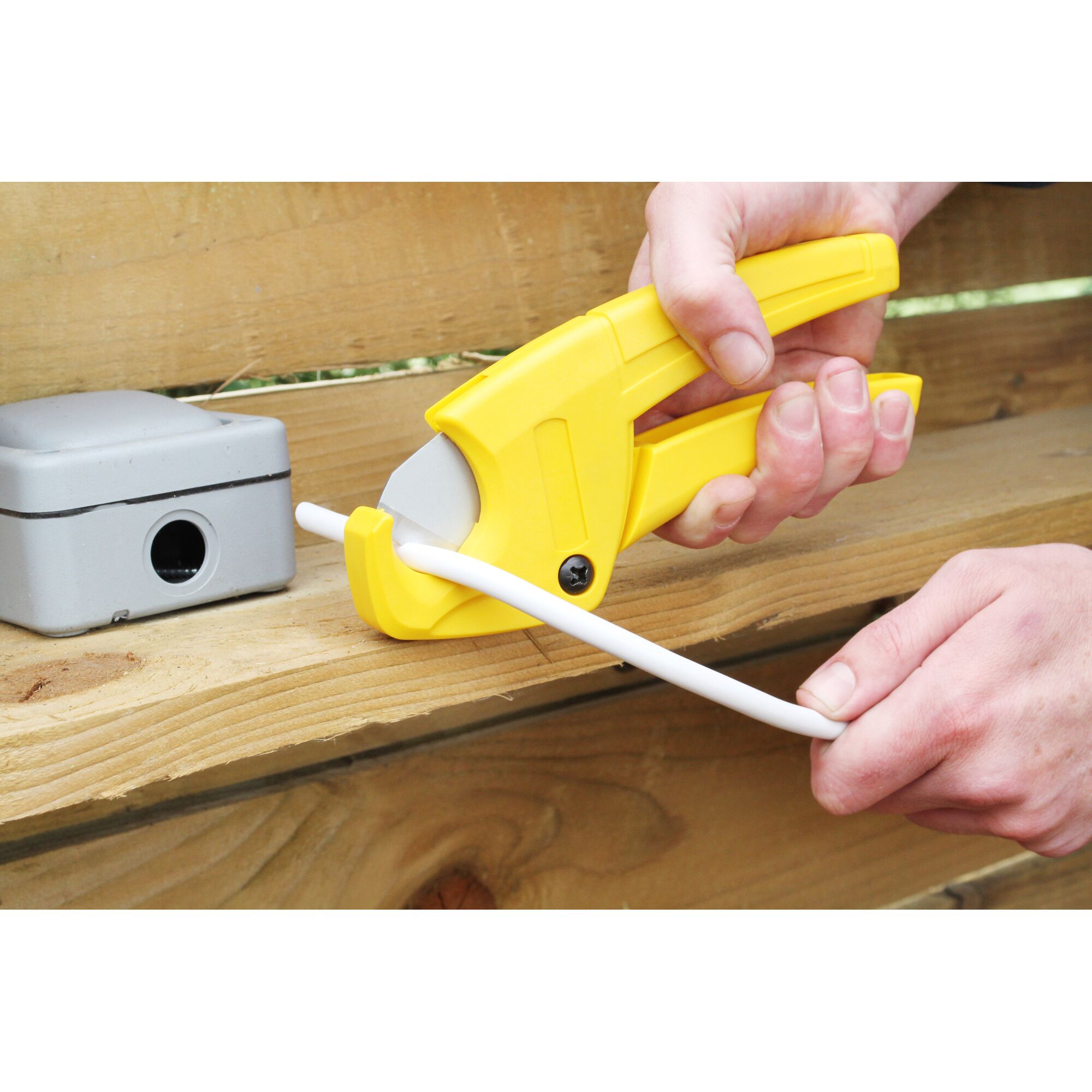 Schneidet Kunststoffrohre bis 28mm Durchmesser, Abschlußprofile (Fliesenprofile), Schläuche, Kunststoffprofile und Kabelkanäle