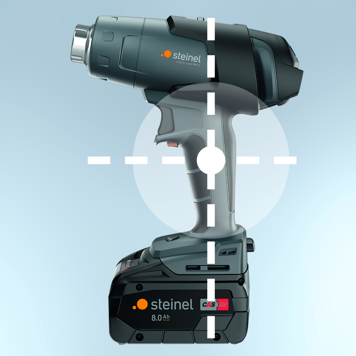 Von 0 auf 300 in 5 Sekunden. Schnell zur Hand und sofort startklar: Das 18-V-Akku-Heißluftgebläse MobileHeat 3 ist binnen fünf Sekunden einsatzbereit und bietet mit 300 °C und 500 °C zwei direkt am Joystick einstellbare Temperaturoptionen. Das kraftvolle Gerät ist für Luftmengen von bis zu 200 l/min ausgelegt. Mit einer Akkuladung können Sie bis zu 200 Schrumpfungen aller Art präzise und sicher durchführen. Dank integriertem LED-Licht ist der Arbeitsbereich immer optimal ausgeleuchtet. Das Akku-Heißluftgebläse wird im praktischen Aufbewahrungskoffer geliefert - auf Wunsch inkl. 8.0 Ah oder 5,5 Ah CAS-Akku und Ladegerät.
