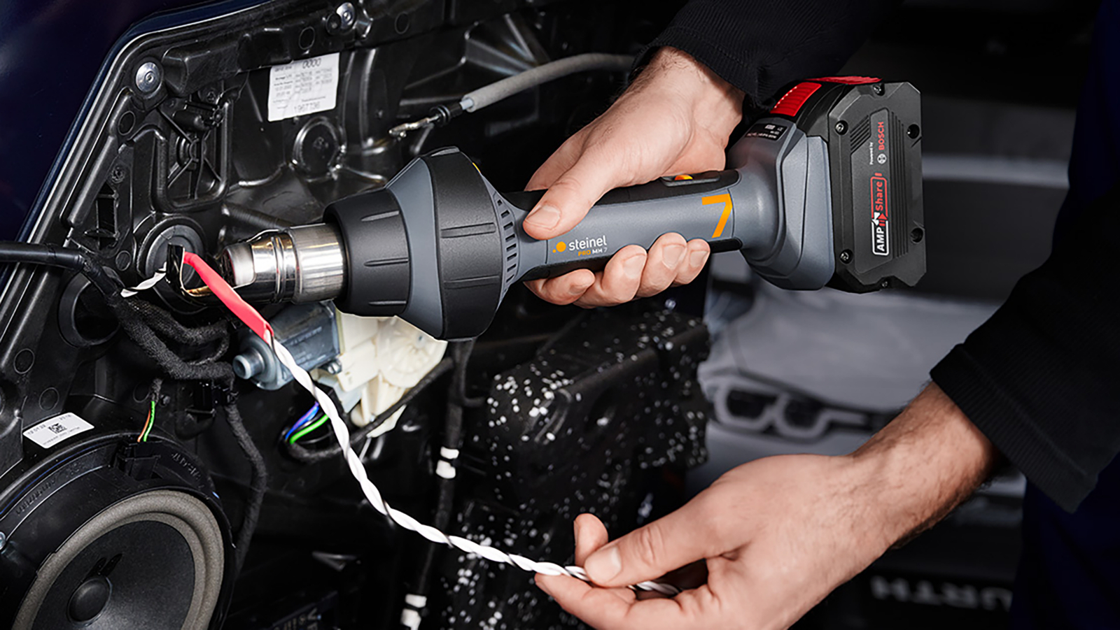 Mobil. Leistungsstark. Temperatursicher. Mobiles Schweißen dank Akku-Technologie. Bisher benötigte man für kleine Nacharbeiten auf dem Dach immer große Schweißautomaten oder kabelgebundene Heißluftgebläse. Mit dem MobileHeat 7 ist damit Schluss. Dank Akku der AMPShare Allianz von BOSCH können jetzt schnell und flexibel die letzten Feinarbeiten erledigt werden. 9 digital gesteuerte Temperaturstufen, eine automatischen Luftmenge von 200l/min. sowie der Temperature Boost (350°C in unter 4 Sek.) werden auch in vielen weiteren Branchen geschätzt.