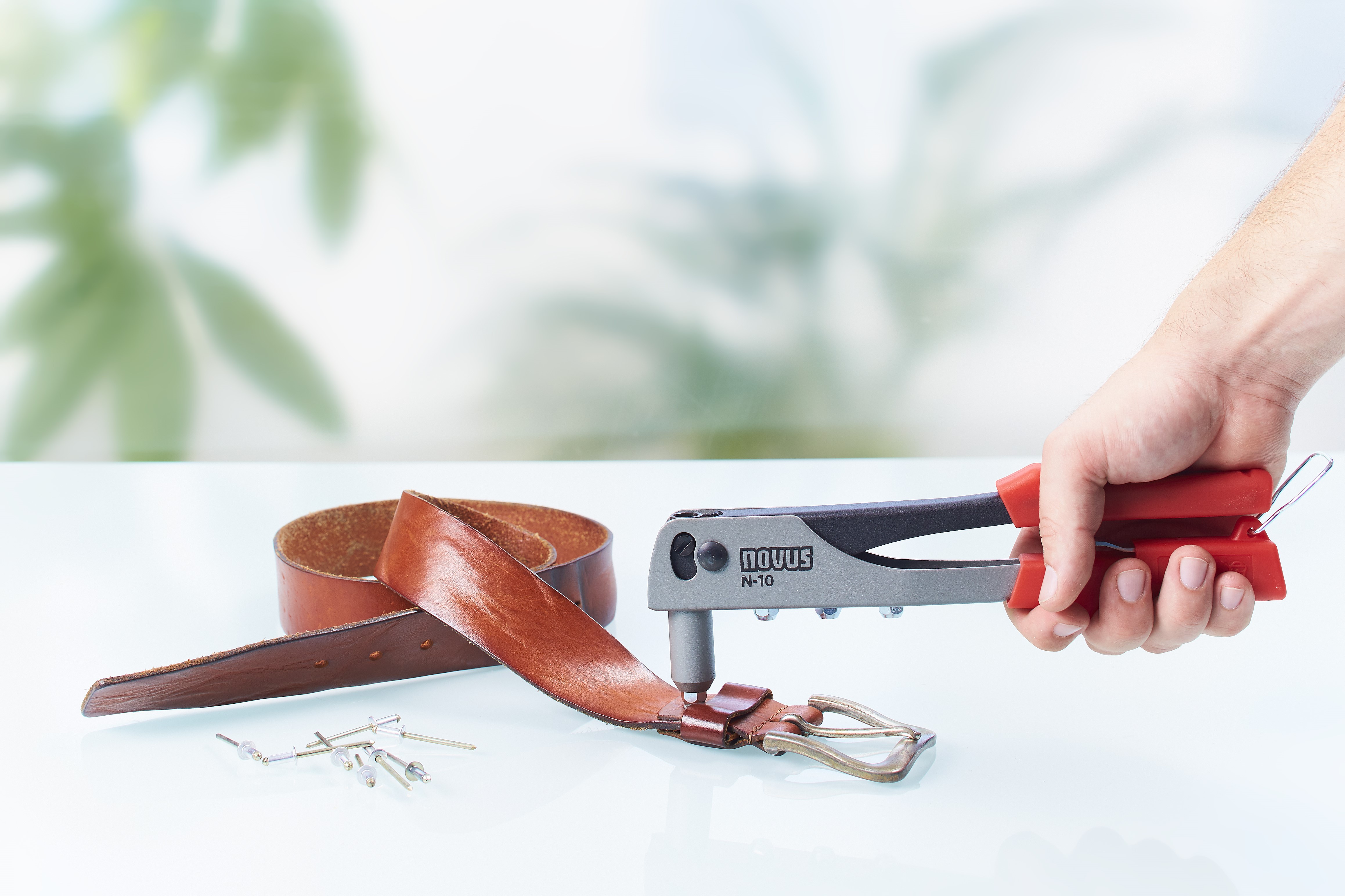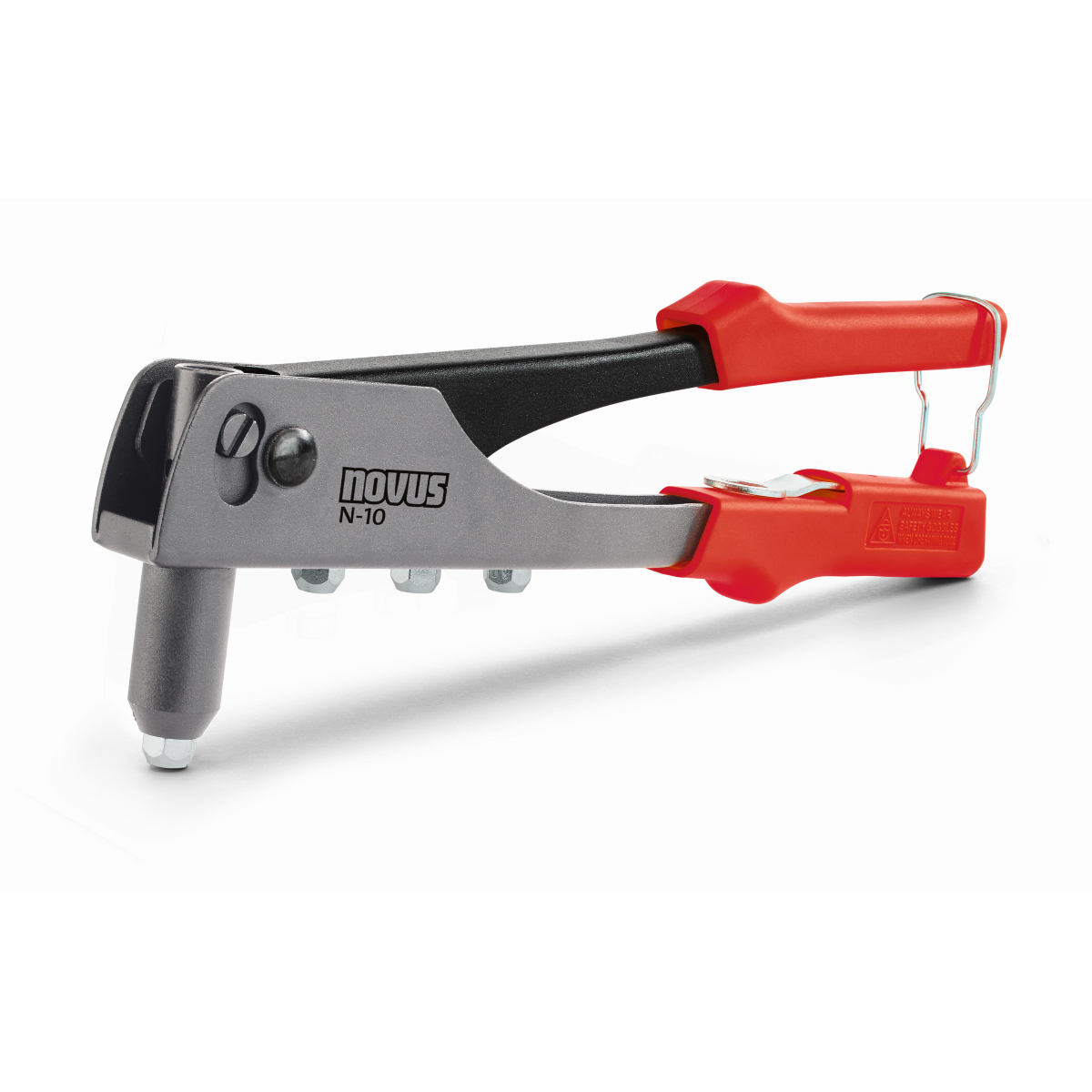 Blindnietzange. Die leichte Blindnietzange für gelegentliches Arbeiten. Gerätekörper aus Aluminium, Hebel aus Stahlblech mit vier Mundstücken und integriertem Montageschlüssel, Griffsicherung und Rückholfeder für 1-Hand-Bedienung. Verarbeitet Aluminium Blindniete A2,4, A3, A4 und A5.