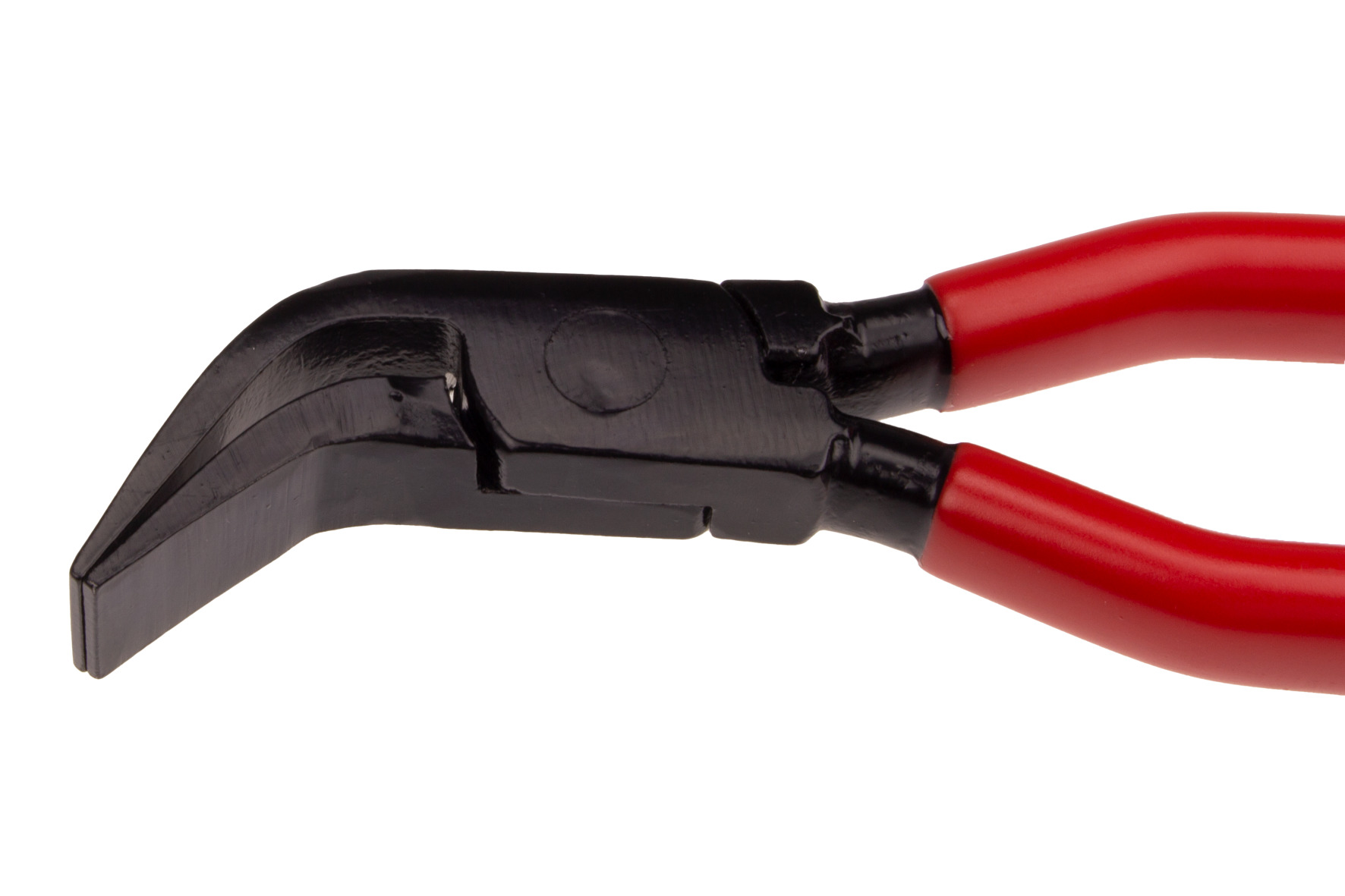 Optimierte Geometrie mit kurzem handlichen Griff für feineres Arbeiten, schwarz KTL beschichtet, 45° gebogen.