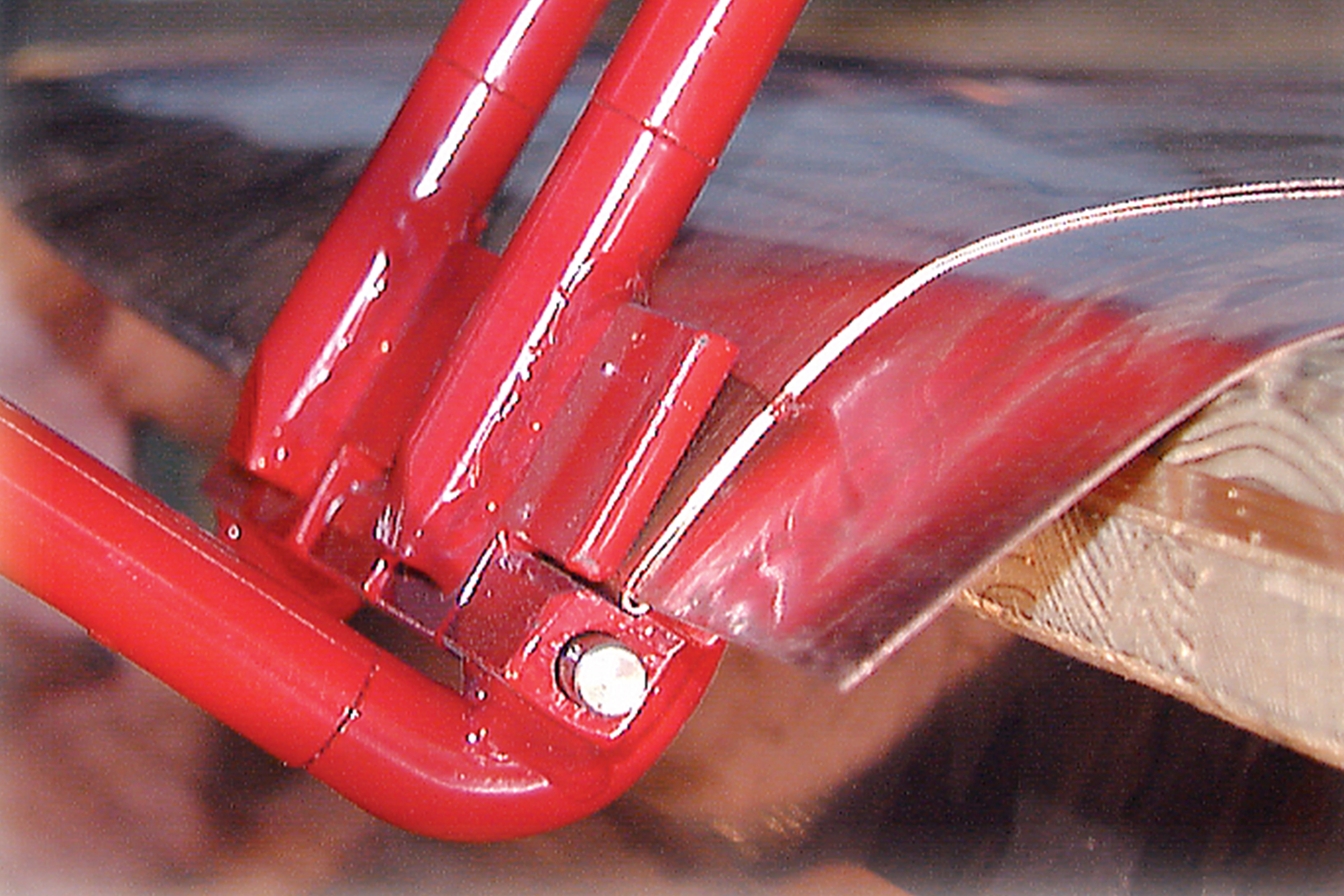 Ideal zum Schließen der vorgefalzten Traufenkante, Fertigfalzen ohne Hammer, deshalb keine Hammerschläge auf dem Blech sichtbar, Fertigbiegen der Traufenkante in zwei Arbeitsgängen.