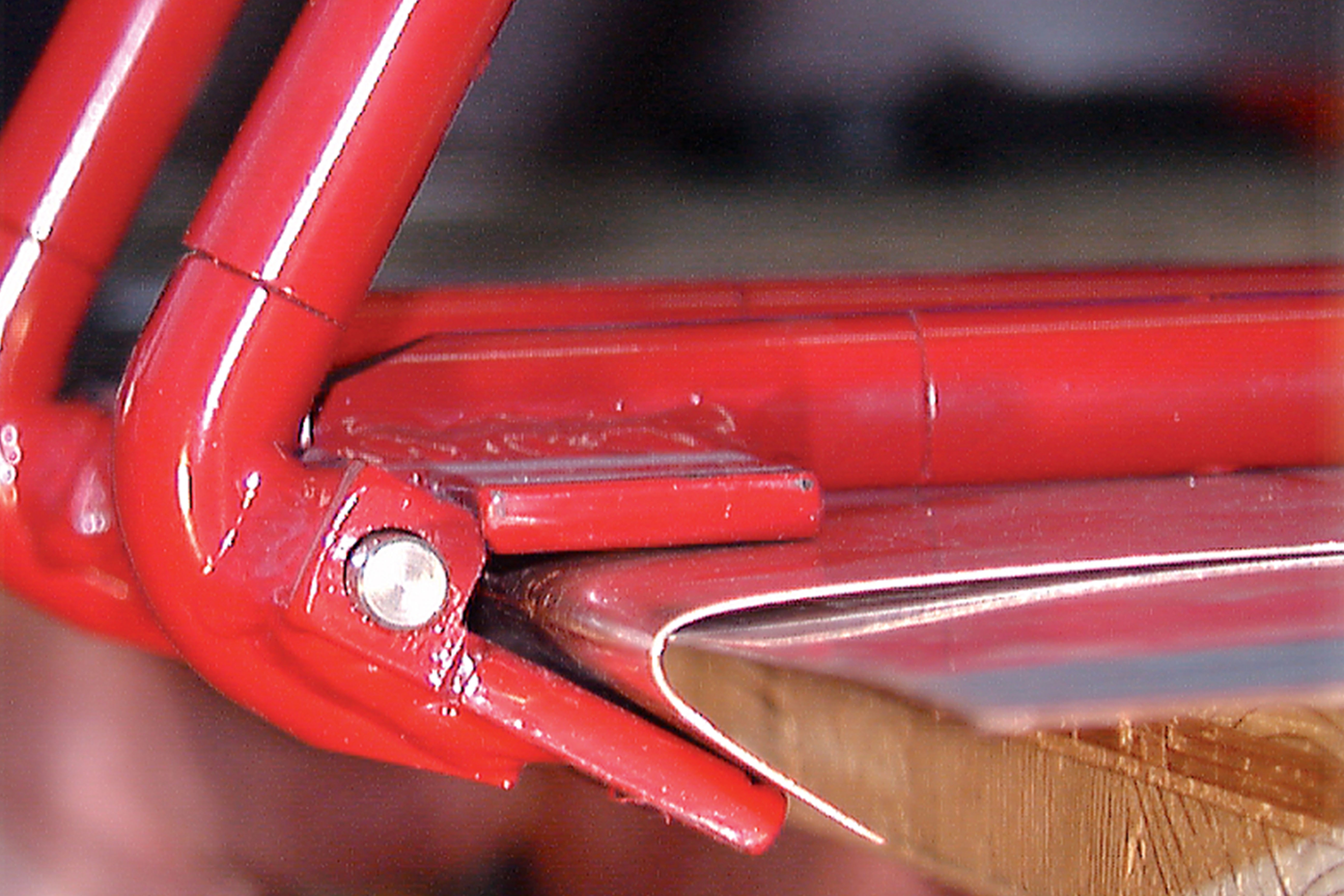 Ideal zum Schließen der vorgefalzten Traufenkante, Fertigfalzen ohne Hammer, deshalb keine Hammerschläge auf dem Blech sichtbar, Fertigbiegen der Traufenkante in zwei Arbeitsgängen.NR,