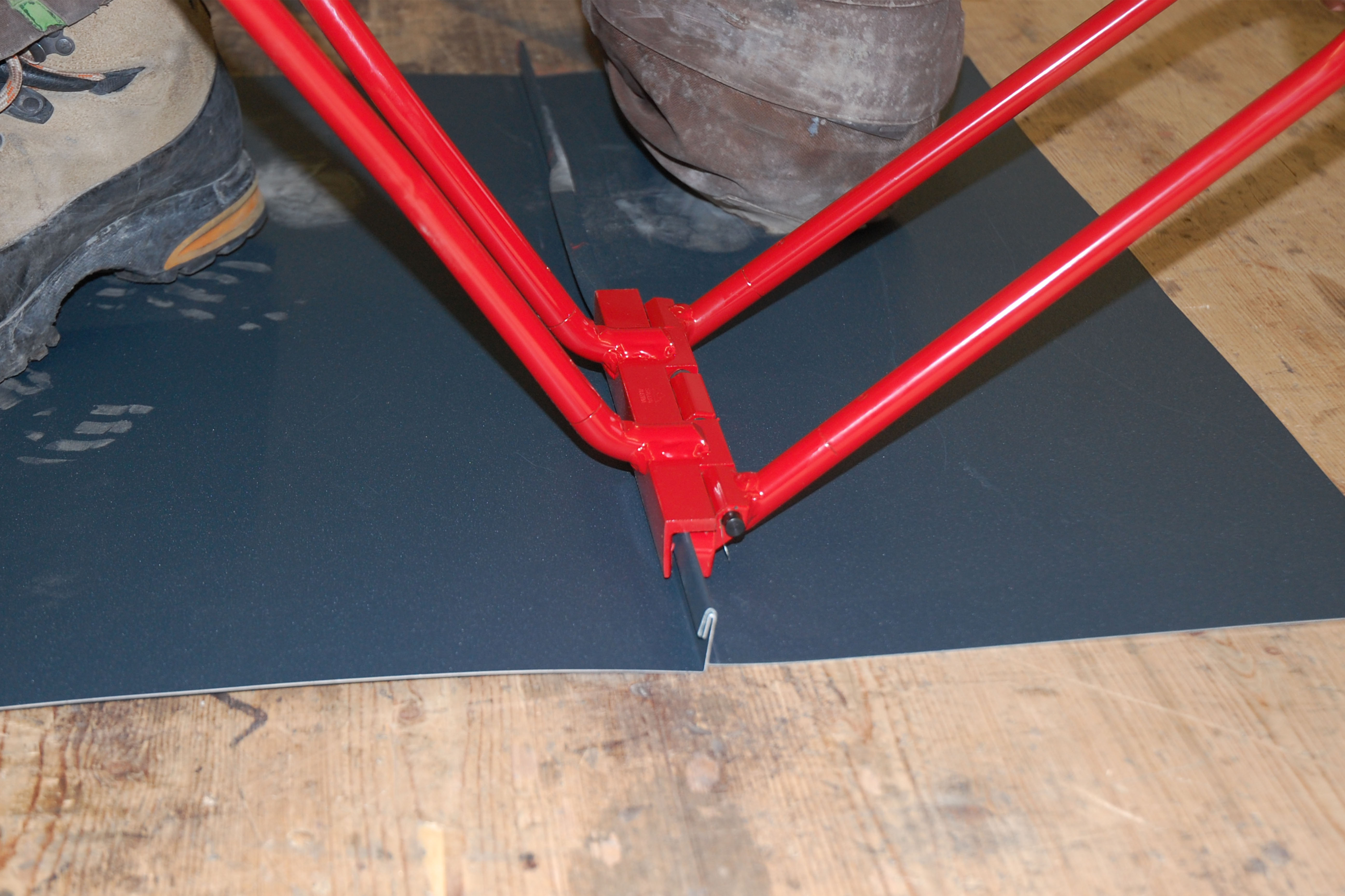 Ideal zum Schließen des geschlossenen Winkelfalzes (Fahnenfalz) zum doppelten Stehfalz in einem Arbeitsvorgang.