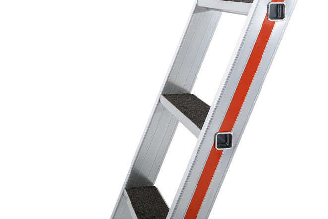 - Hohe Robustheit durch verwindungsstabile, verbördelte Holm-Stufen-Verbindung