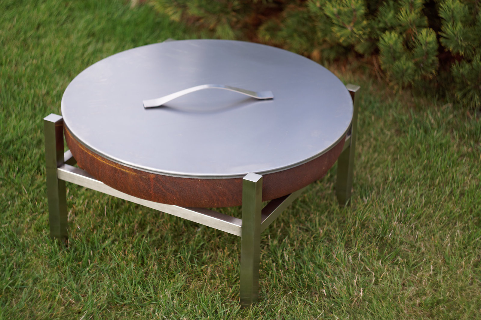 Deckel für SvenskaV Feuerschalen 63,0 cm Durchmesser - Edelstahl (Materialstärke 1,2 mm). Dieser solide Deckel wird in einer europäischen Designer-Werkstatt weitgehend in Handarbeit hergestellt und entspricht höchsten Qualitätsansprüchen.