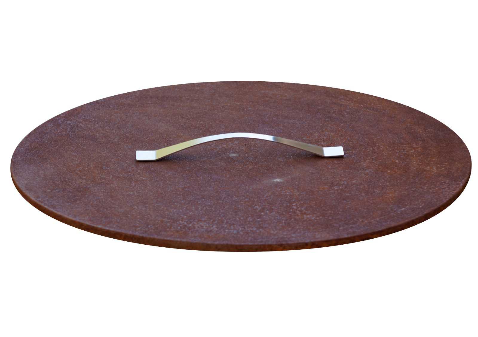 Deckel für SvenskaV Feuerschalen 63,0 cm Durchmesser - Rohstahl (Materialstärke 1,2 mm) mit Edelstahlgriff. Dieser solide Deckel wird in einer europäischen Designer-Werkstatt weitgehend in Handarbeit hergestellt und entspricht höchsten Qualitätsansprüchen.