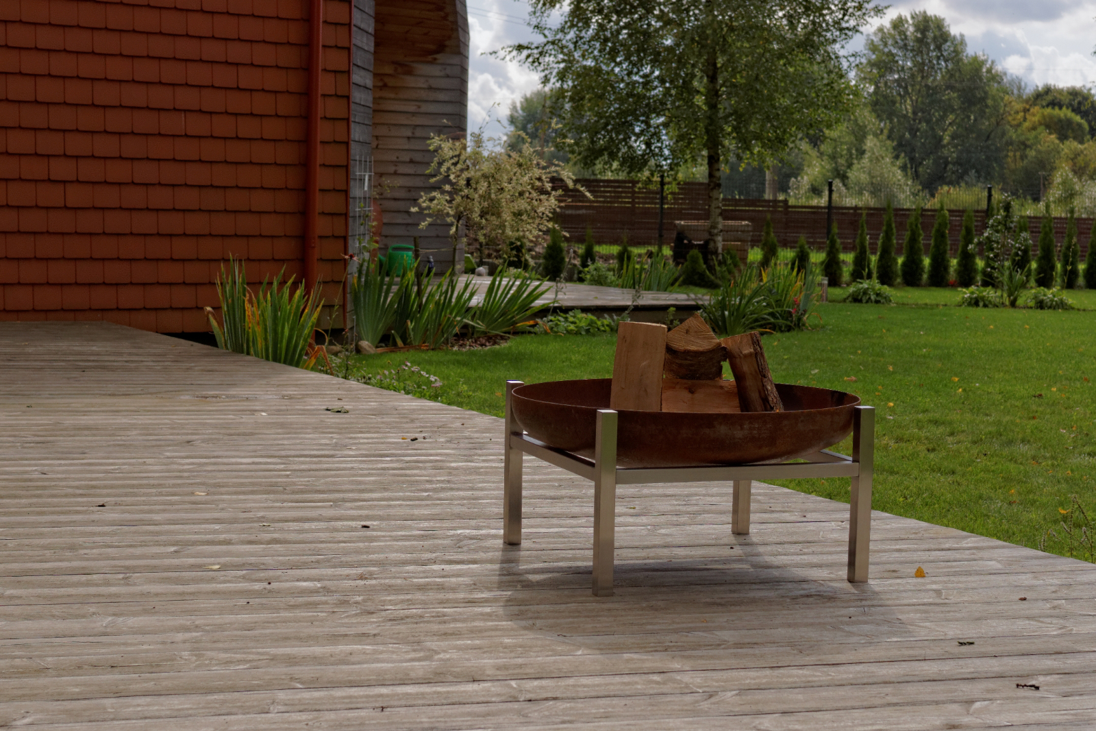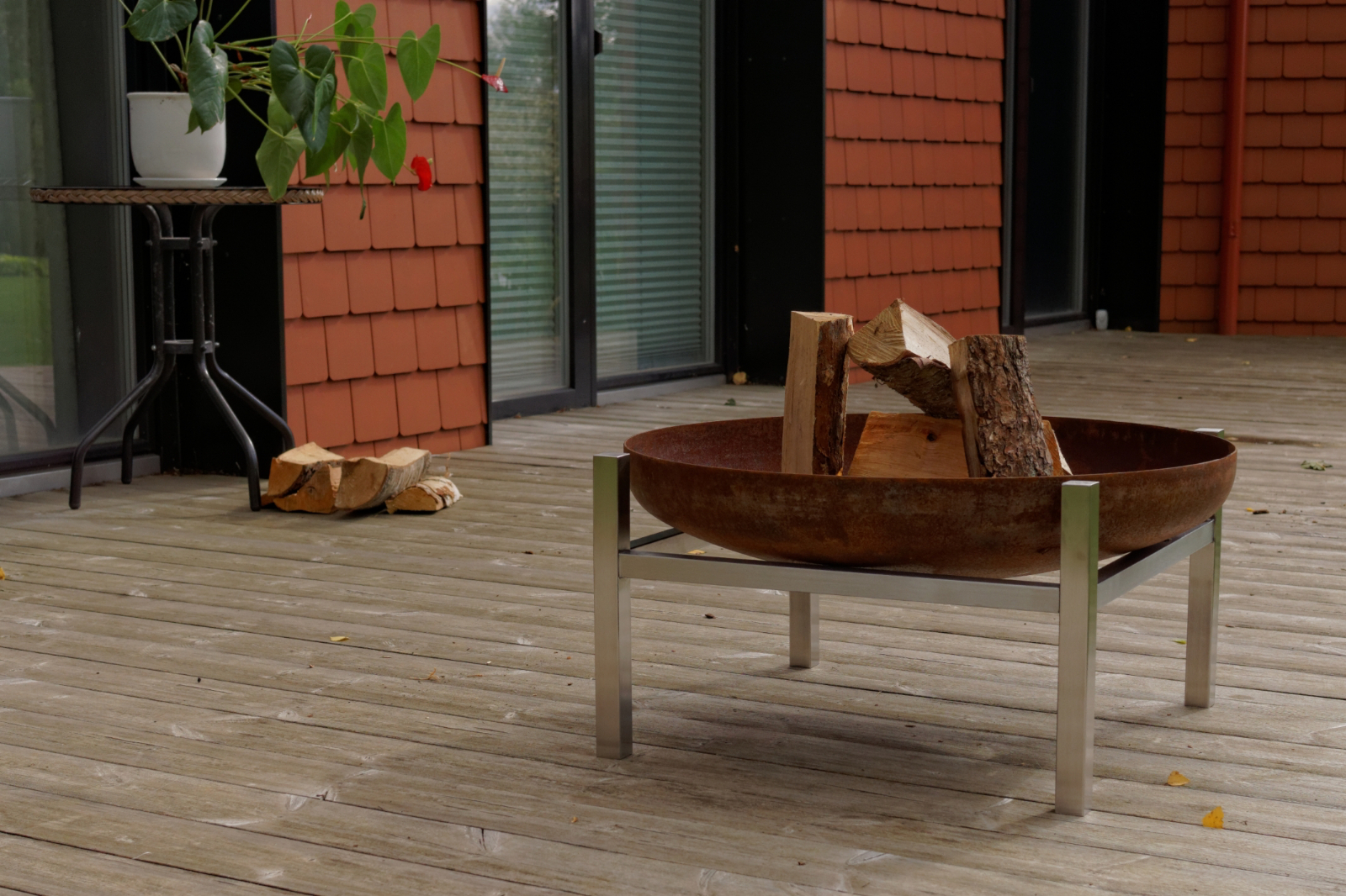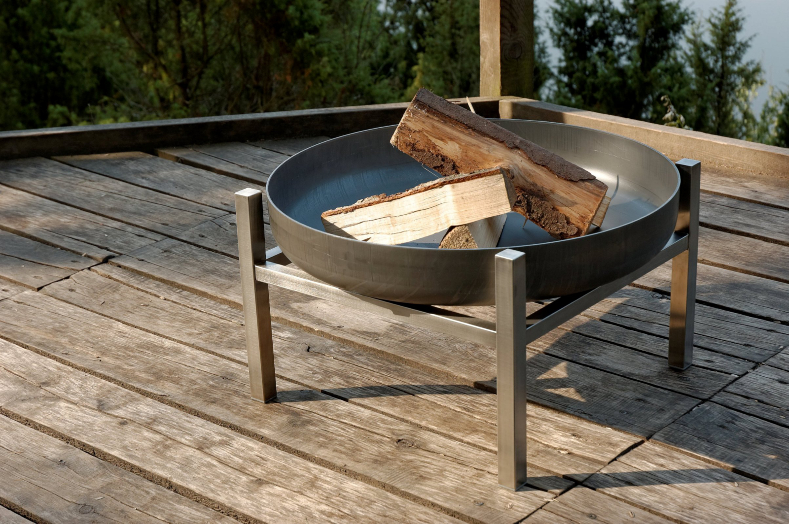 Überaus attraktive Feuerschale: die Kombination soliden, rostenden Rohstahls (Materialstärke 3,2 mm) mit einer zeitlosen Edelstahl-Basis bietet auch ohne Befeuerung einen tollen Blickfang. Diese solide Feuerschale wird in einer europäischen Designer-Werkstatt weitgehend in Handarbeit hergestellt und entspricht höchsten Qualitätsansprüchen.