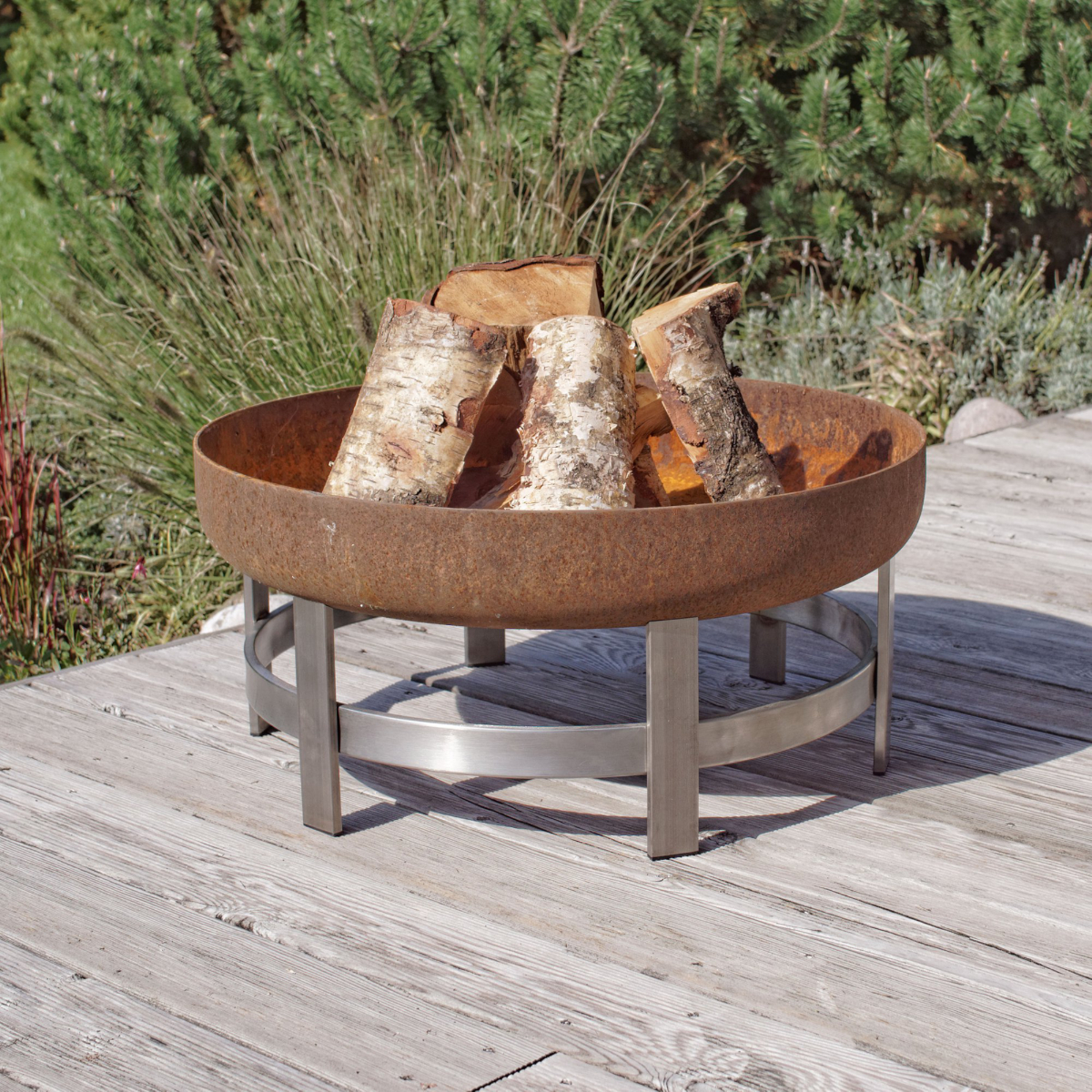 Design Feuerschale FLAME XXL - Edelstahl-Basis mit Feuerschale aus massivem Rohstahl 3,2 mm (rostend)
