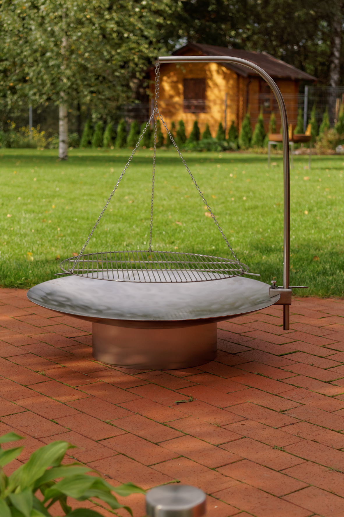 Attraktive Feuerschale GRACE XXL ES in modernem Design - komplett aus massivem Edelstahl. Drei aufgeschweißte Haltepunkte gewährleisten die sichere Platzierung der Schale auf dem Fußring. Diese solide Feuerschale wird in einer europäischen Designer-Werkstatt weitgehend in Handarbeit hergestellt und entspricht höchsten Qualitätsansprüchen.