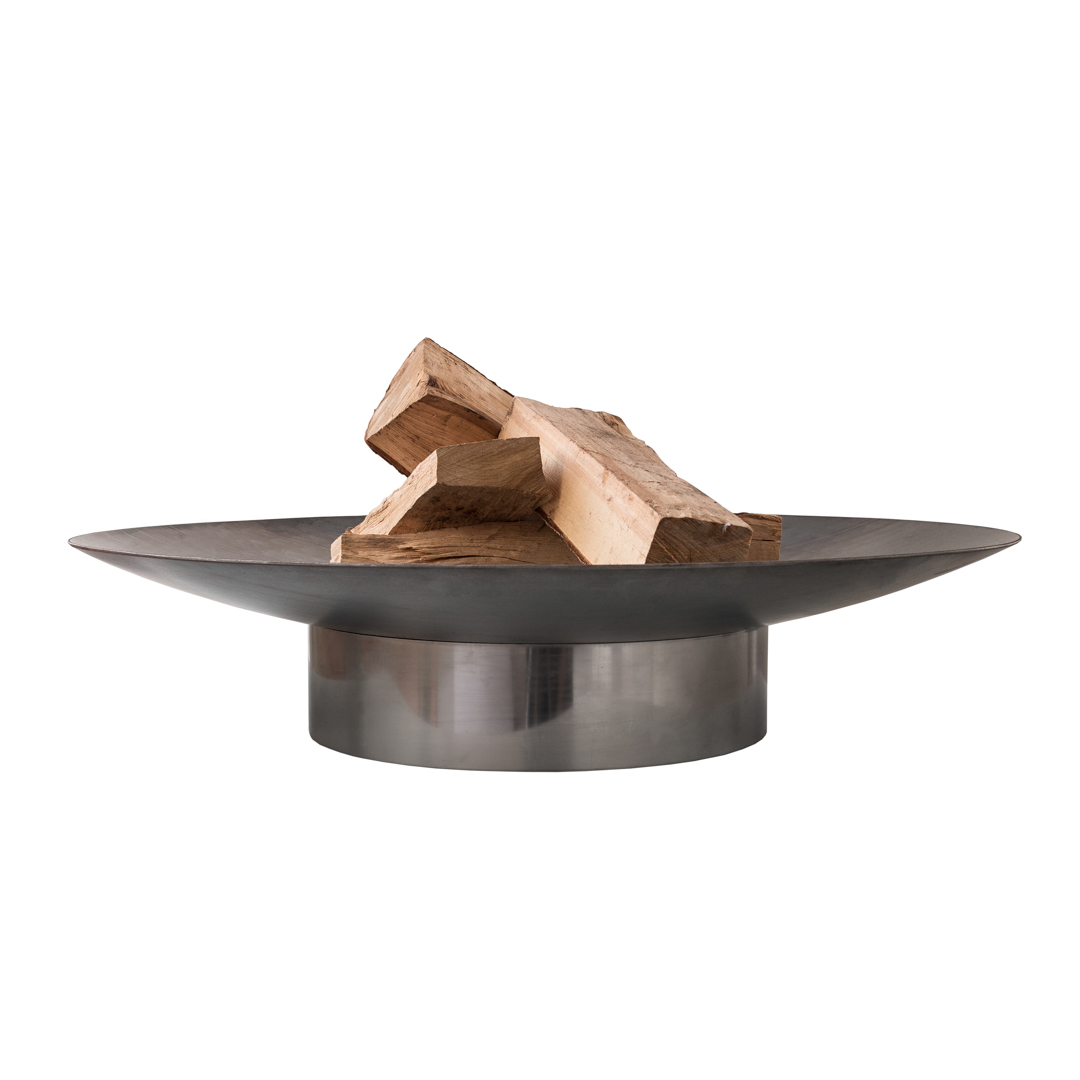 Attraktive Feuerschale GRACE Super XXL in modernem Design aus massivem Rohstahl (rostend) - Ring Rohstahl. Drei aufgeschweißte Haltepunkte gewährleisten die sichere Platzierung der Schale auf dem Fußring. Diese solide Feuerschale wird in einer europäischen Designer-Werkstatt weitgehend in Handarbeit hergestellt und entspricht höchsten Qualitätsansprüchen.