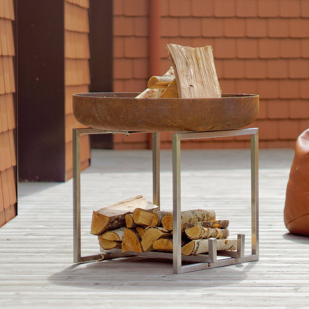 Design Feuerschale NAGLIAI M - Edelstahl-Basis mit Feuerschale aus massivem Rohstahl 3,2 mm (rostend)