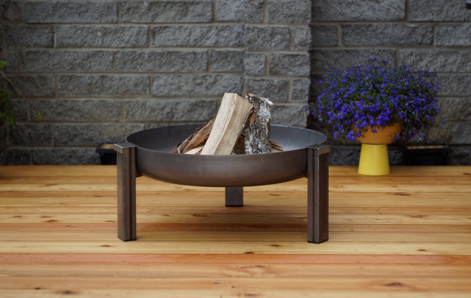 Design Feuerschale BASIC Größe XXL - Vierkant-Füße aus Rohstahl mit Edelstahl-Applikationen - Feuerschale aus massivem Rohstahl 3,2 mm (rostend)