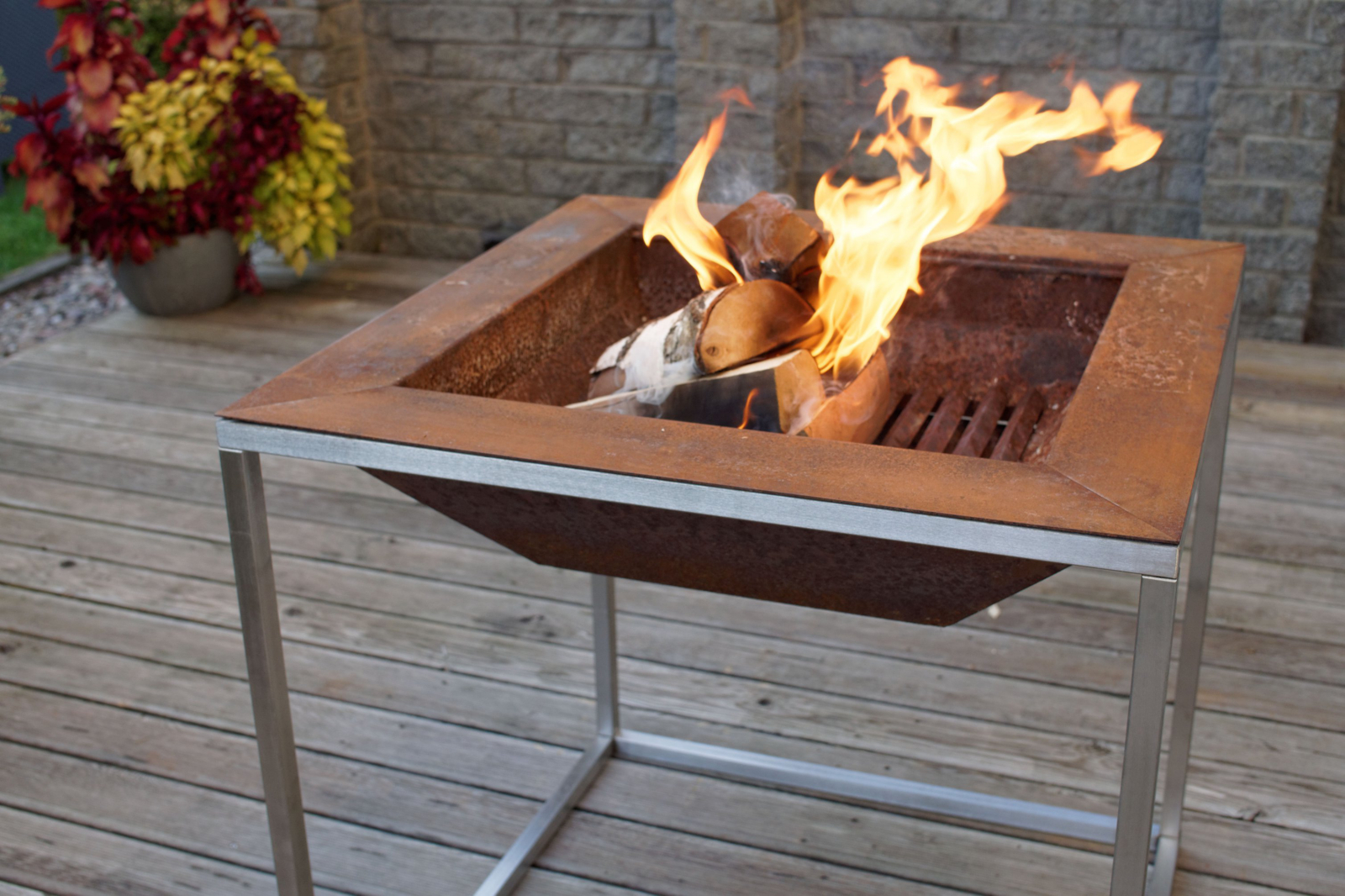 Design Grillstelle CUBE Grill Corten - Edelstahl-Basis mit Grillstelle/ Feuerschale aus massivem Cortenstahl, Grilleinsatz aus Edelstahl