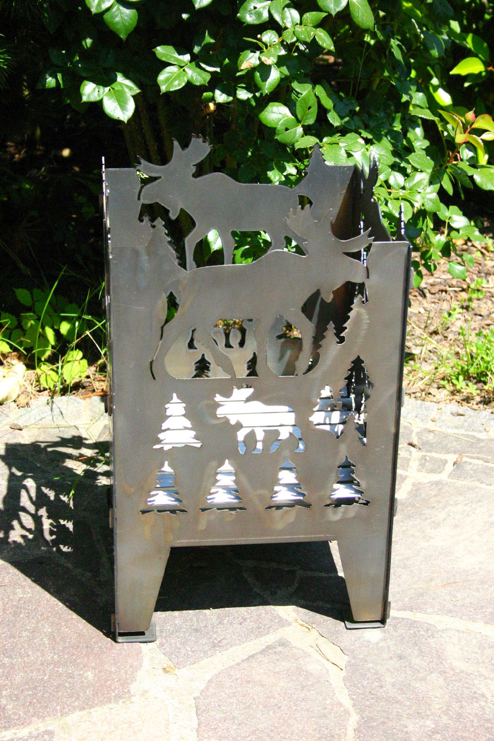 Feuerkorb Größe L Motiv Elch aus Rohstahl - Stecksystem - mit Ascheblech und massiven integriertem Gitterrost