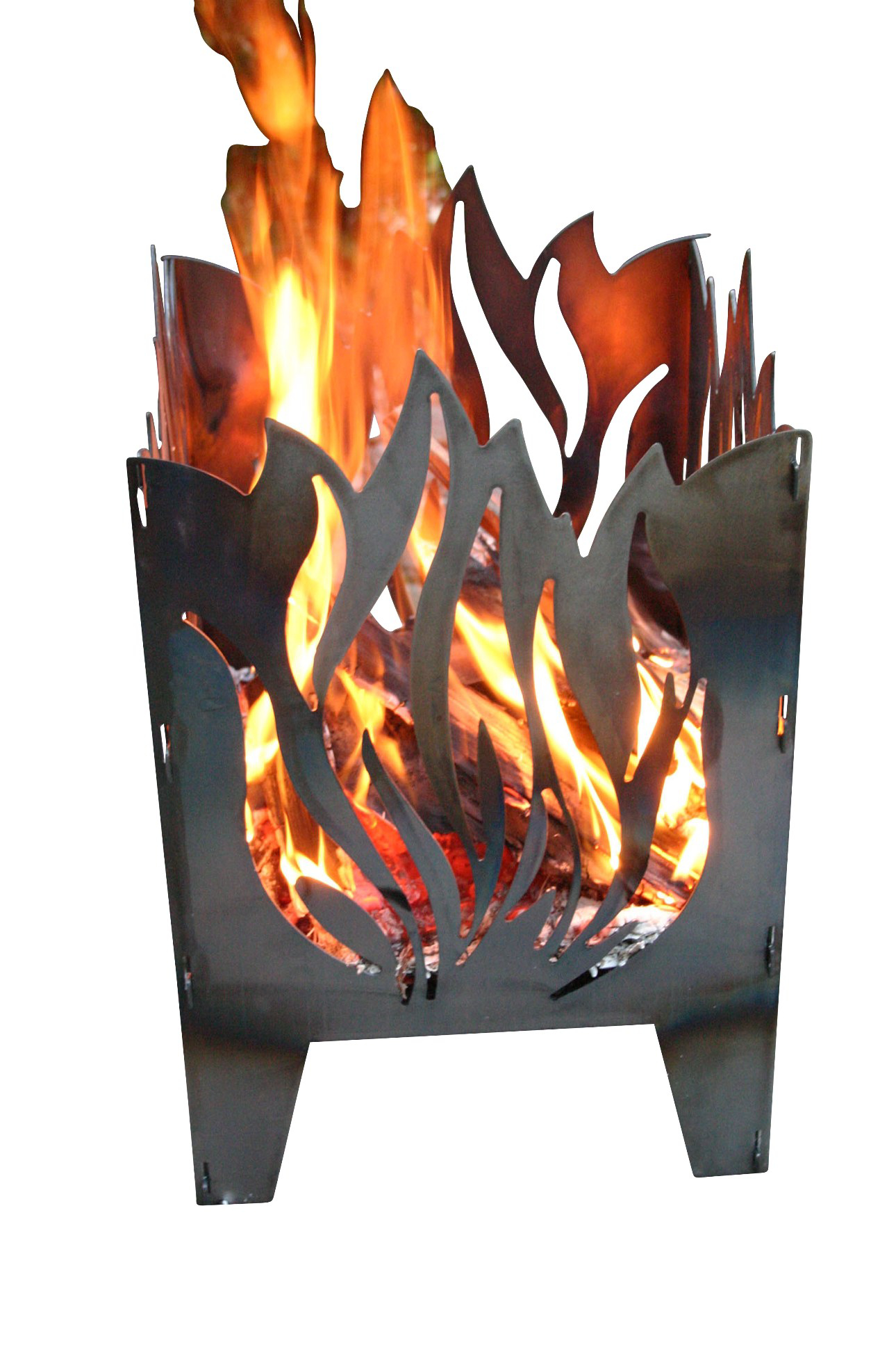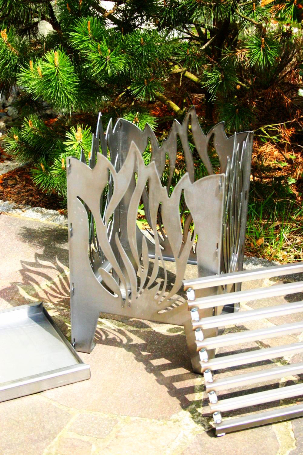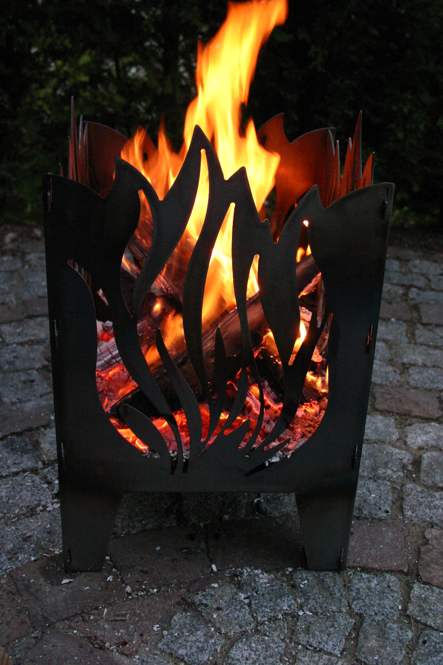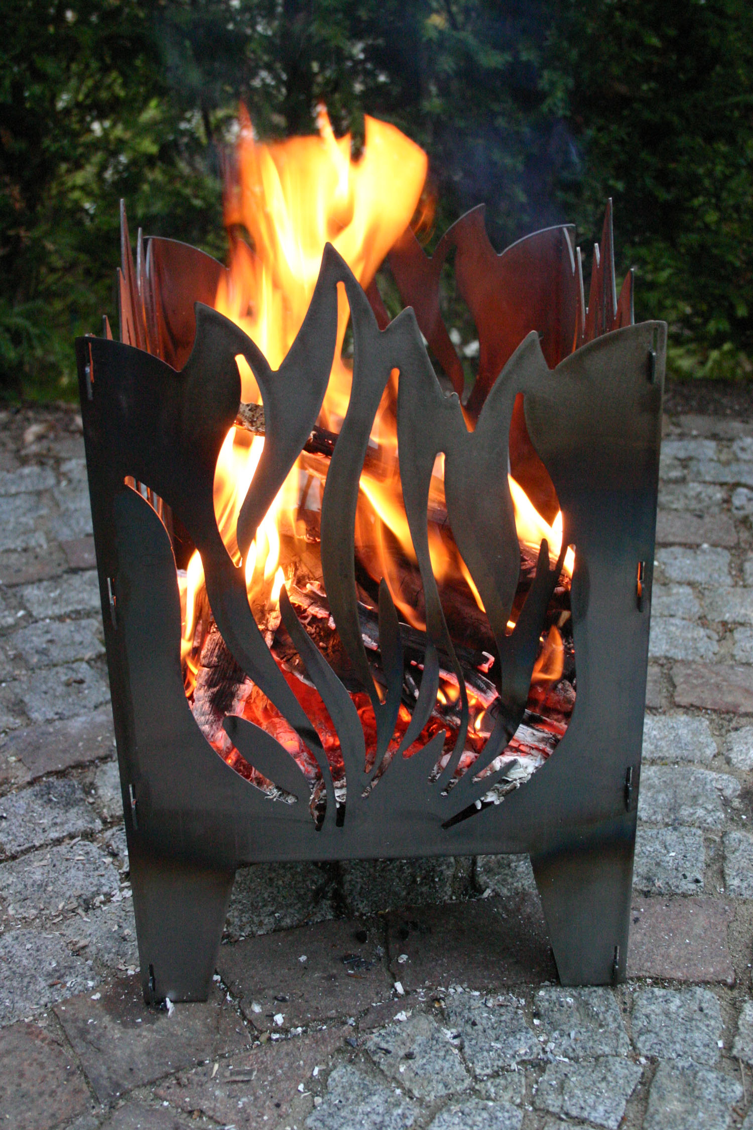 Feuerkorb Größe XXL Motiv Flamme aus Rohstahl - Stecksystem - mit Ascheblech und massiven integriertem Gitterrost