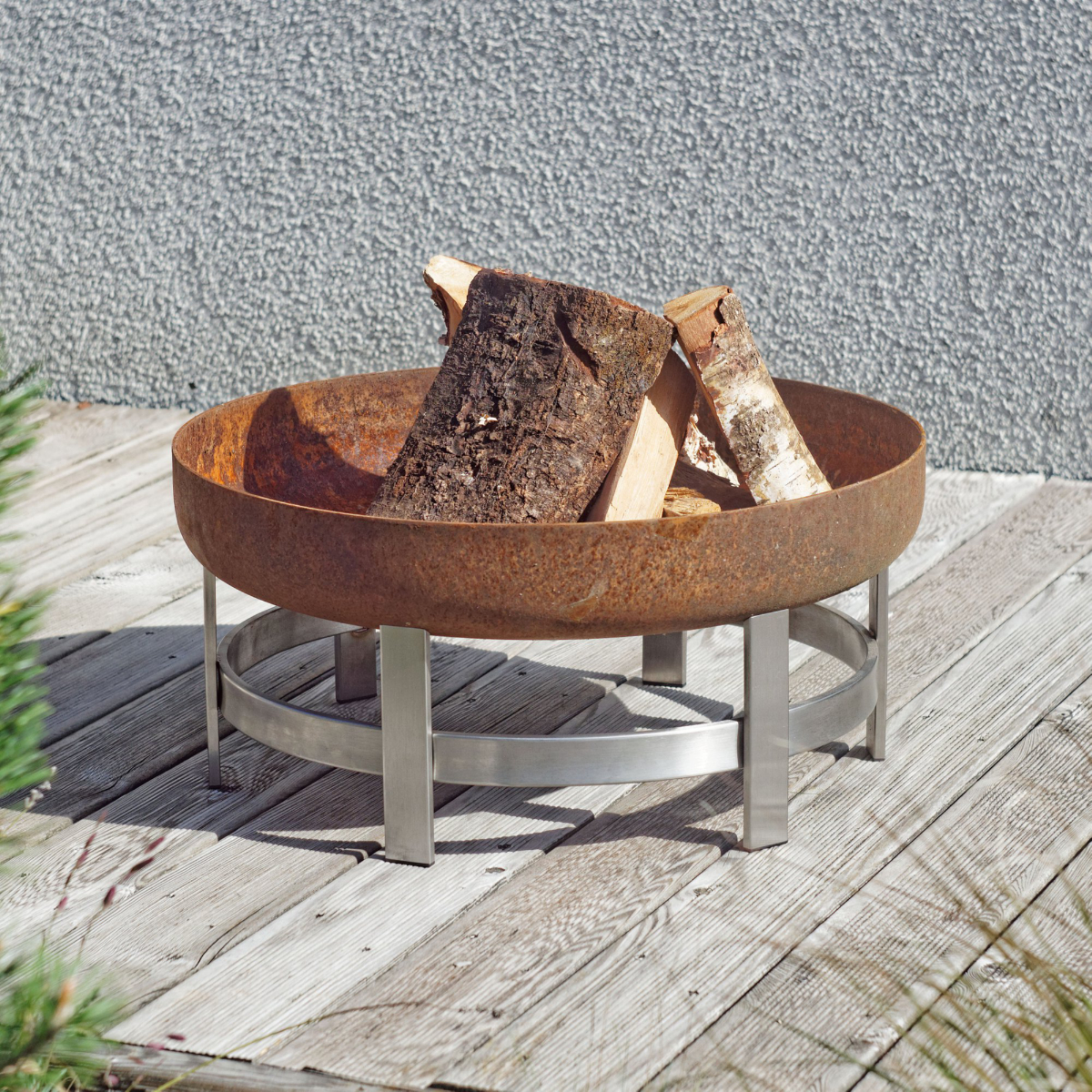 Design Feuerschale FLAME Super XXL - Edelstahl-Basis mit Feuerschale aus massivem Rohstahl 2,5 mm (rostend)