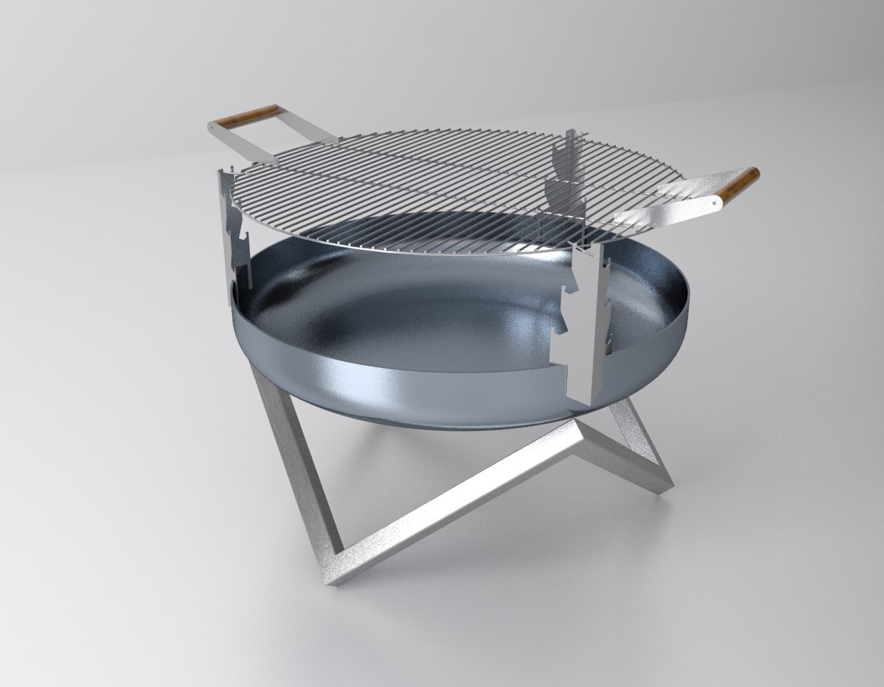 Grill-Aufsatz für SvenskaV Feuerschalen 79.0 cm Durchmesser - Rost aus massivem Edelstahl gefertigt - 3 aufsteckbare Halterungen aus Rohstahl (rostend) erlauben eine Platzierung - des Grillgutes auf 6 verschiedenen Ebenen - hölzerne Handgriffe