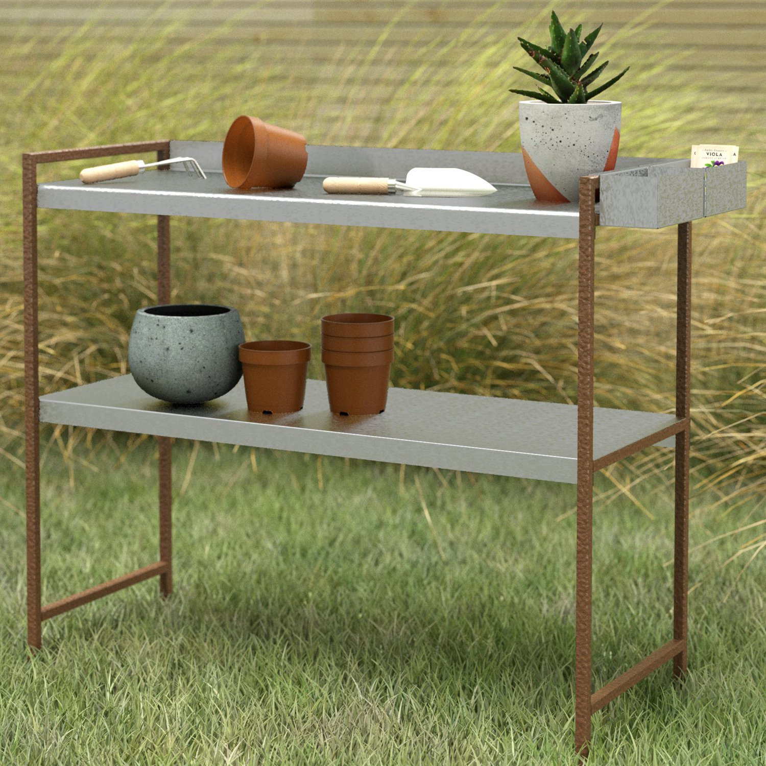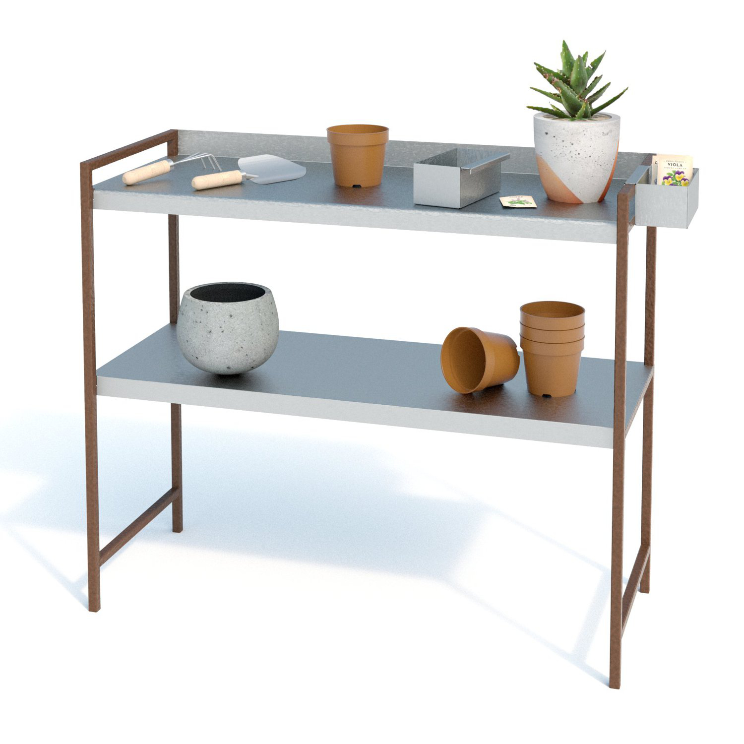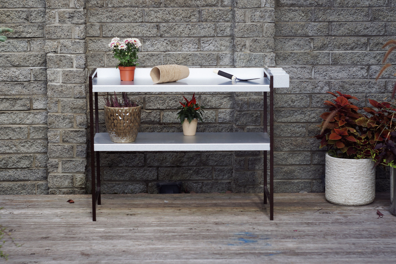 Der einzigartige Pflanztisch aus pulverbeschichtetem und verzinktem Stahl ist eine robuste und langlebige Ergänzung für jeden Garten oder Balkon. Er bietet eine stabile und ebene Fläche zum Umtopfen von Pflanzen, zum Aussäen von Samen oder zum Einrichten einer dekorativen Blumen- und Kräuteranordnung.