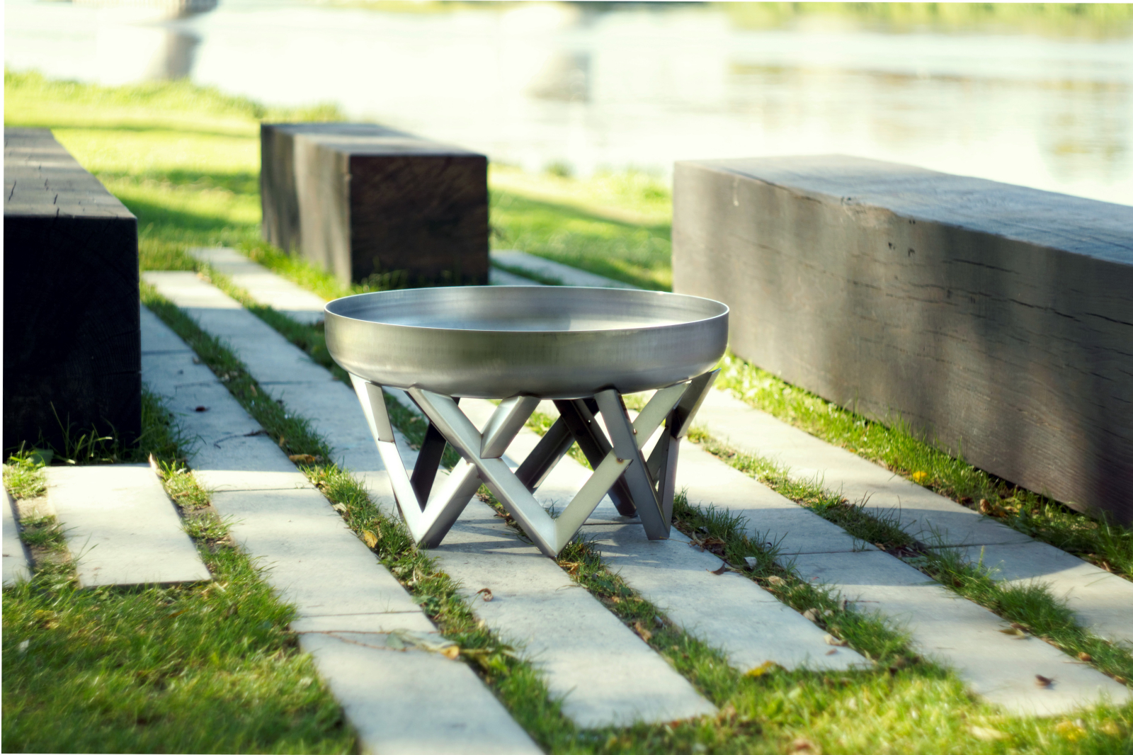 Design Feuerschale VENTA Größe Super XXL - Edelstahl-Basis mit Feuerschale aus massivem Rohstahl 2,5 mm (rostend)
