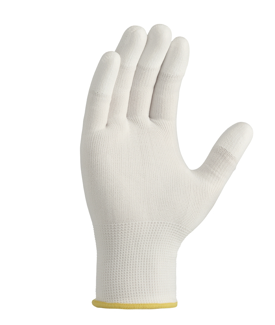 Polyester-Strickgewebe, Fingerspitzen mit Polyurethan-Beschichtung, weiss, STANDARD-Qualität, Strickbund, ca. 13 Gauge (= 1,828 mm)