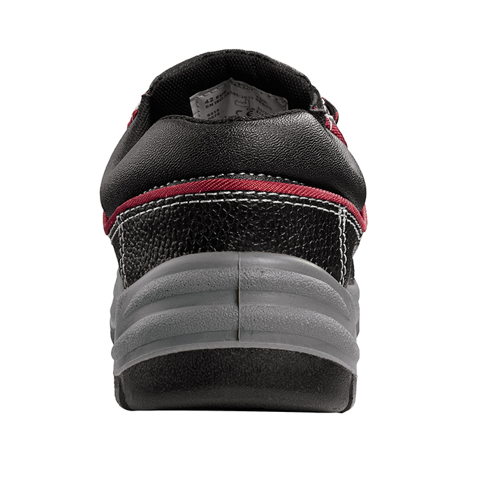 Obermaterial: genarbtes Rindleder, rote Biese Futter: atmungsaktives Textil-Funktionsfutter Sohle: 2-Dichten PU/PU-Sohle mit PU-Überkappe Zehenschutzkappe: Stahlkappe Durchtritthemmung: Stahl Fußbett: ganzflächige Einlegesohle