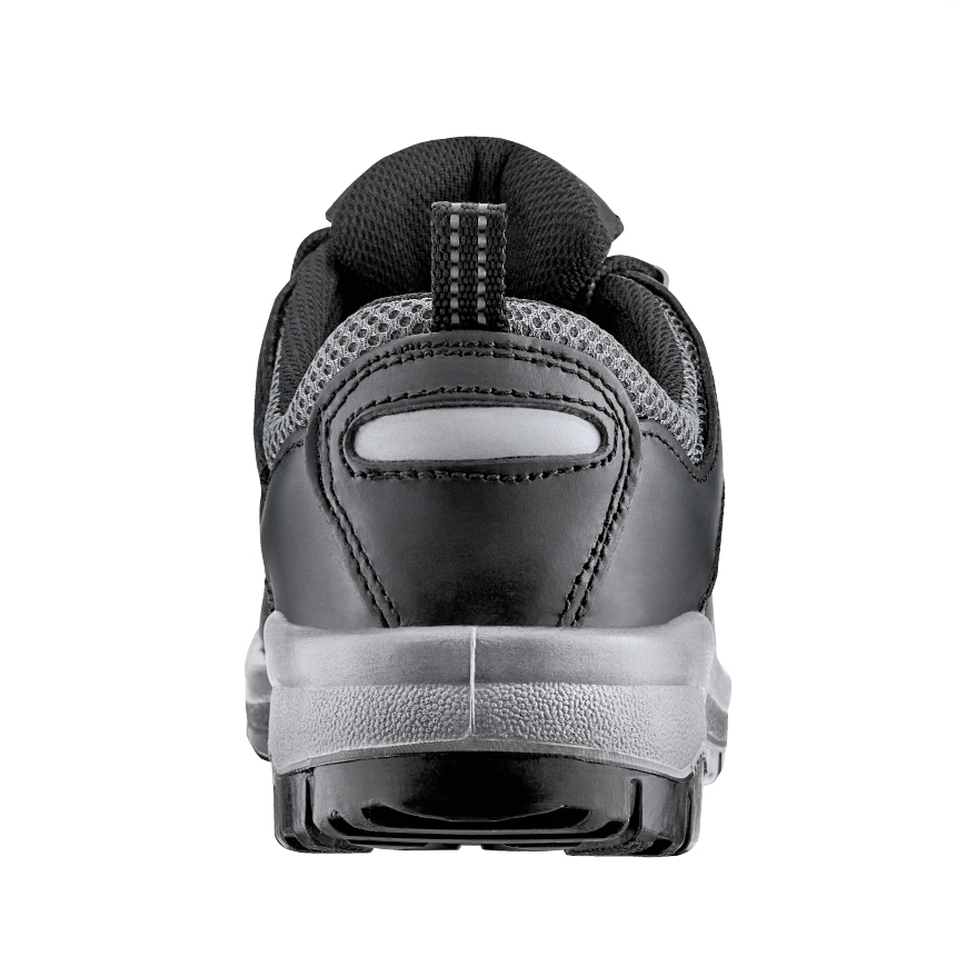 Obermaterial: hydrophobiertes Nubukleder, reflektierende Applikationen Futter: atmungsaktives Textil-Funktionsfutter Sohle: 2-Dichten TPU/PU-Sohle mit PU-Überkappe Zehenschutzkappe: Stahlkappe Durchtritthemmung: Stahl Fußbett: ganzflächige Einlegesohle