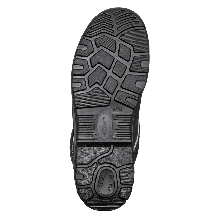 Obermaterial: hydrophobiertes Nubukleder, reflektierende Applikationen Futter: atmungsaktives Textil-Funktionsfutter Sohle: 2-Dichten TPU/PU-Sohle mit PU-Überkappe Zehenschutzkappe: Stahlkappe Durchtritthemmung: Stahl Fußbett: ganzflächige Einlegesohle
