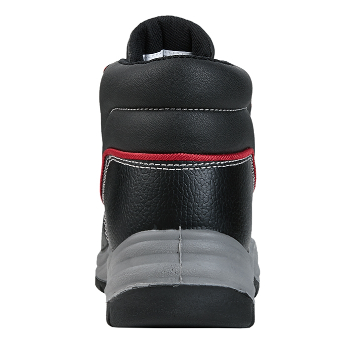 Obermaterial: genarbtes Rindleder, rote Biese Futter: atmungsaktives Textil-Funktionsfutter Sohle: 2-Dichten PU/PU-Sohle mit PU-Überkappe Zehenschutzkappe: Stahlkappe Durchtritthemmung: Stahl Fußbett: ganzflächige Einlegesohle
