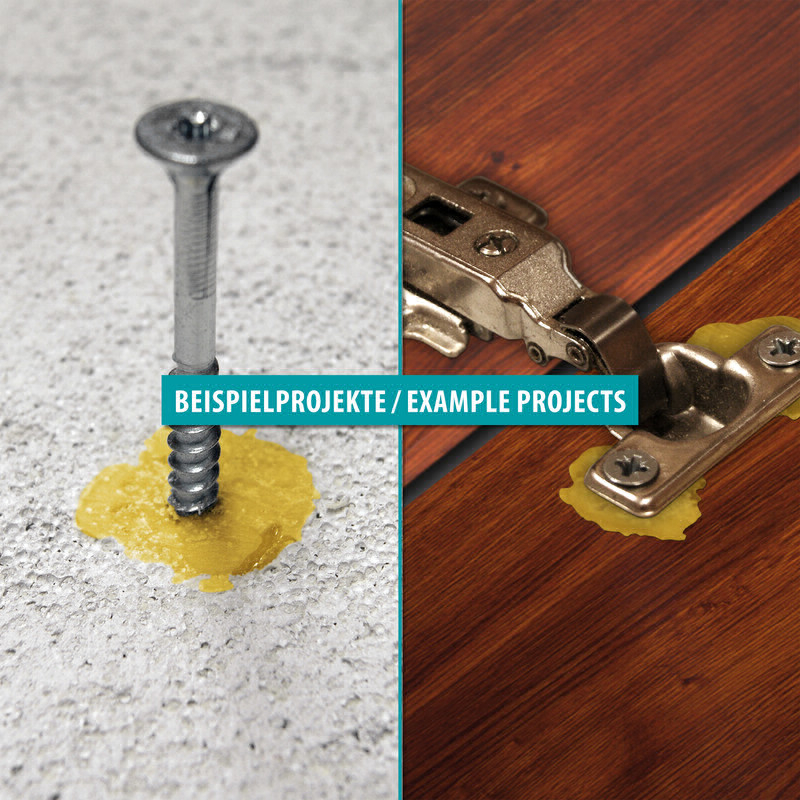 - Schnelle Aushärtung sorgt für rasche Weiterverarbeitung (nach 3-5 Minuten)