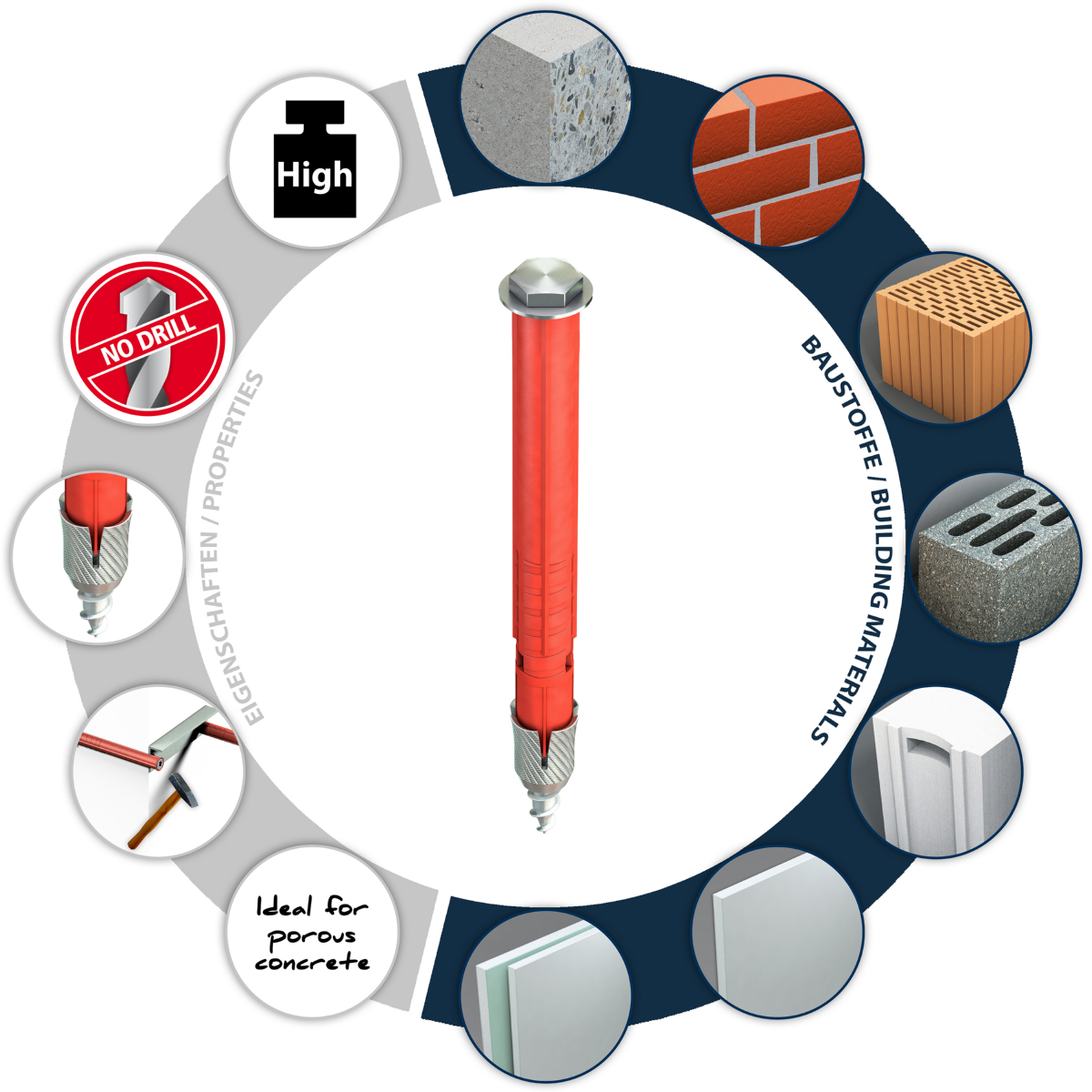 - Ideal für Porenbeton P2: nur einschlagen und festziehen - einfach und schnell