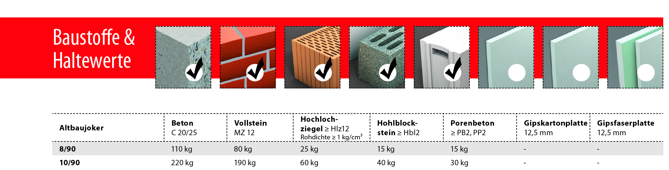- Allzweck-Charakter: hält auch in Mischmauerwerk, wie oft im Altbau üblich
