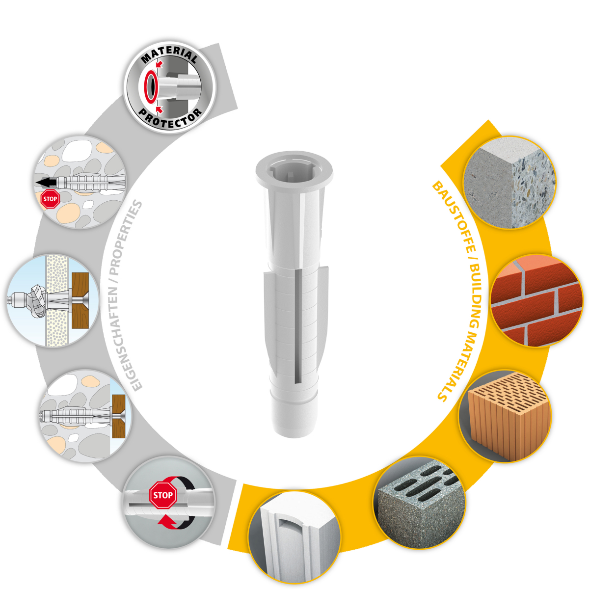 - Allzweckdübel für nahezu alle Baustoffe