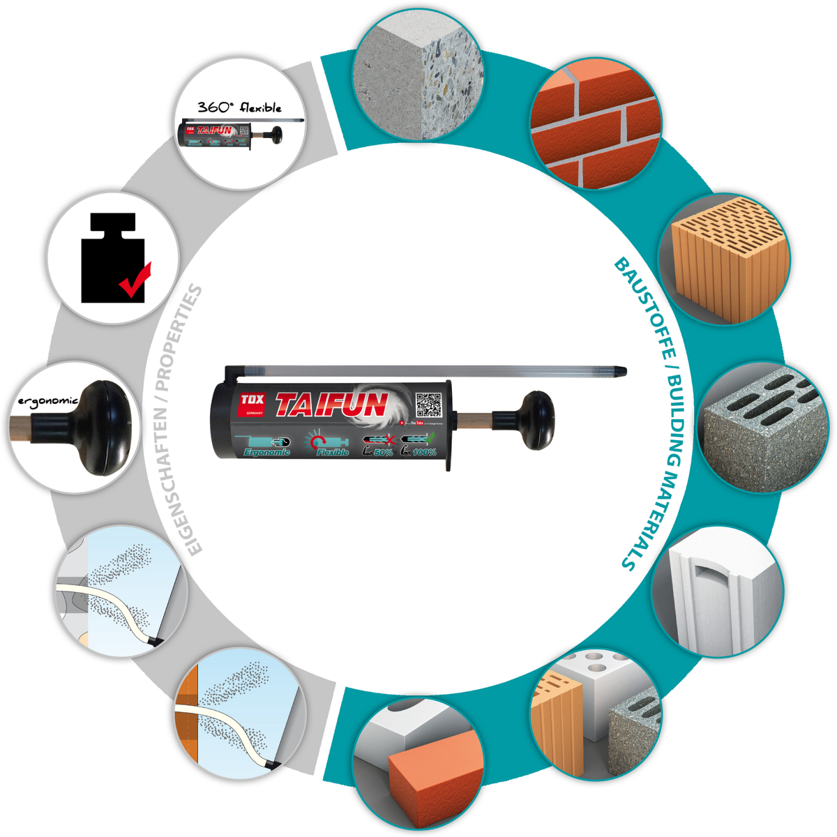 - Geeignet für alle Baustoffe