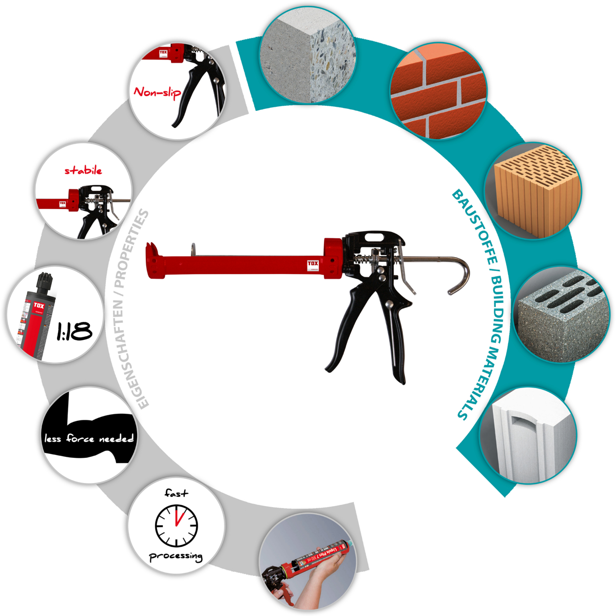 - Speziell zur Verarbeitung von Verbundmörtel-Kartuschen
