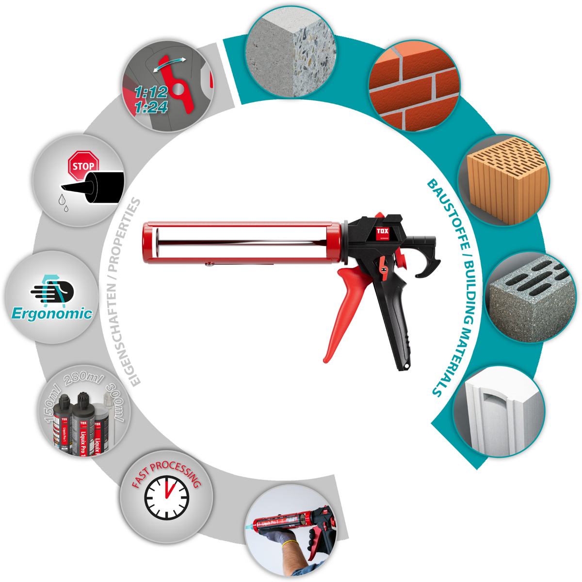 Der „rote Allzweckdübel“ hat TOX bekannt gemacht: Auf dem Gebiet der Allzweckdübel ist das Unternehmen führend. Das umfassende Sortiment ist konsequent auf die Bedürfnisse der Kunden und Endanwender ausgerichtet. Die Marke TOX steht für innovative Produkte und kompetente Lösungen im Bereich der Befestigungstechnik.