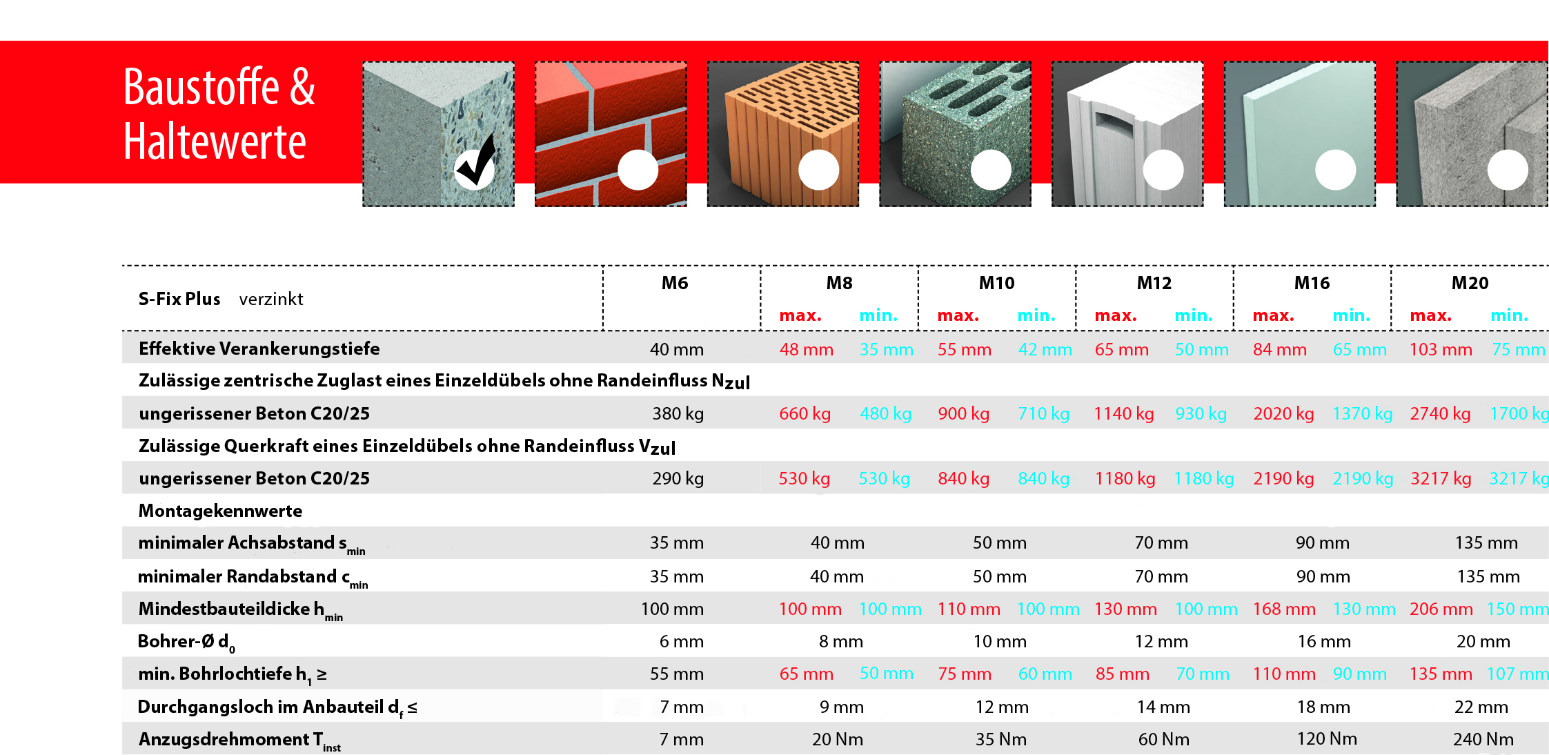 - Geringe Achs- und Randabstände für randnahe Befestigungen und kleine Ankerplatten