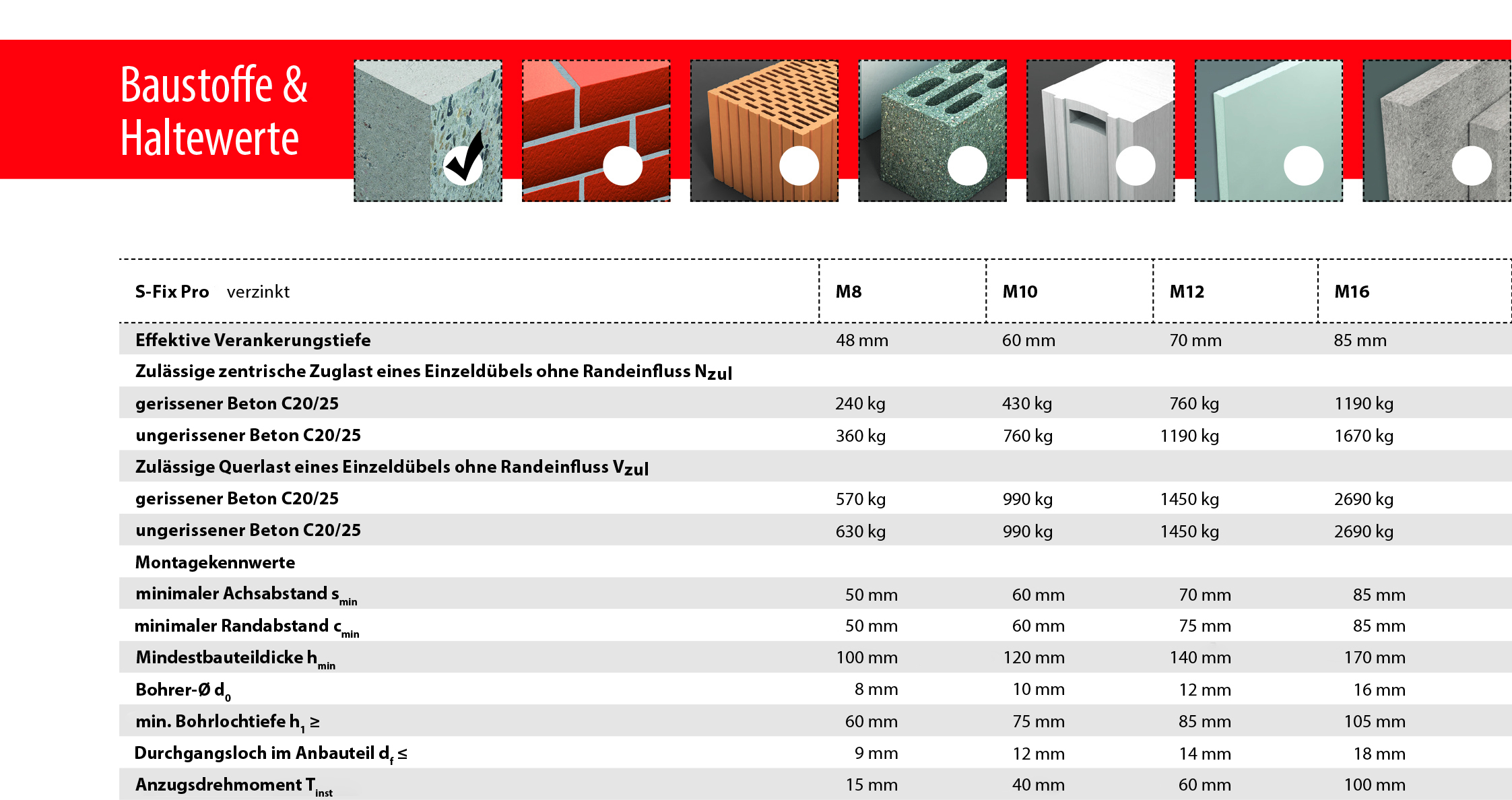- Geringe Achs- und Randabstände für randnahe Befestigungen und kleine Ankerplatten