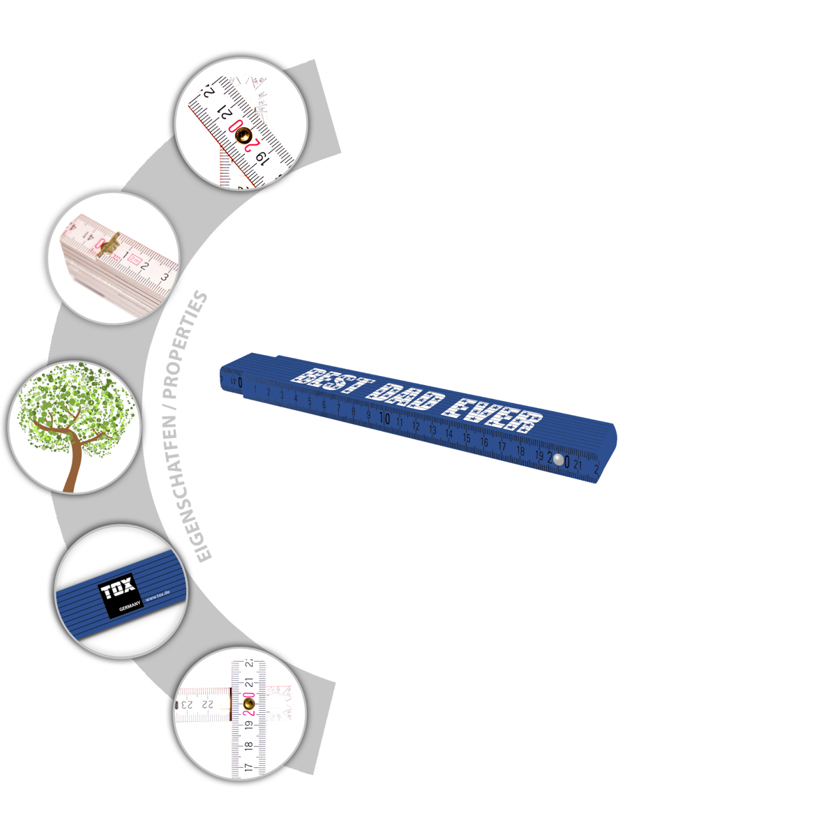 - Lieferumfang: 1 x 2 m TOX Meterstab mit Bedruckung Best Dad Ever, mit Winkelmessfunktion und farbigen Dezimalzahlen, Gliedermaßstab aus Buchenholz in blau, Genauigkeitsklasse III