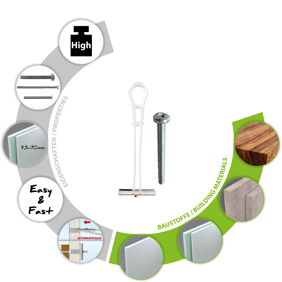 - Längenvariabler Hohlraumdübel aus Kunststoff mit Metall-Kippflügeln