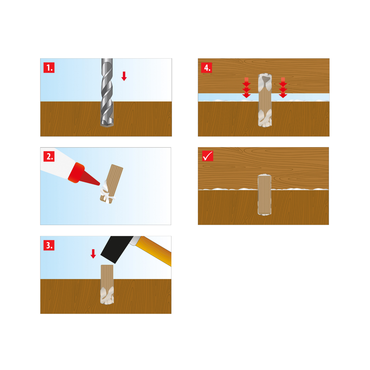- leichtes Einsetzen durch Fasen an den Dübel-Enden