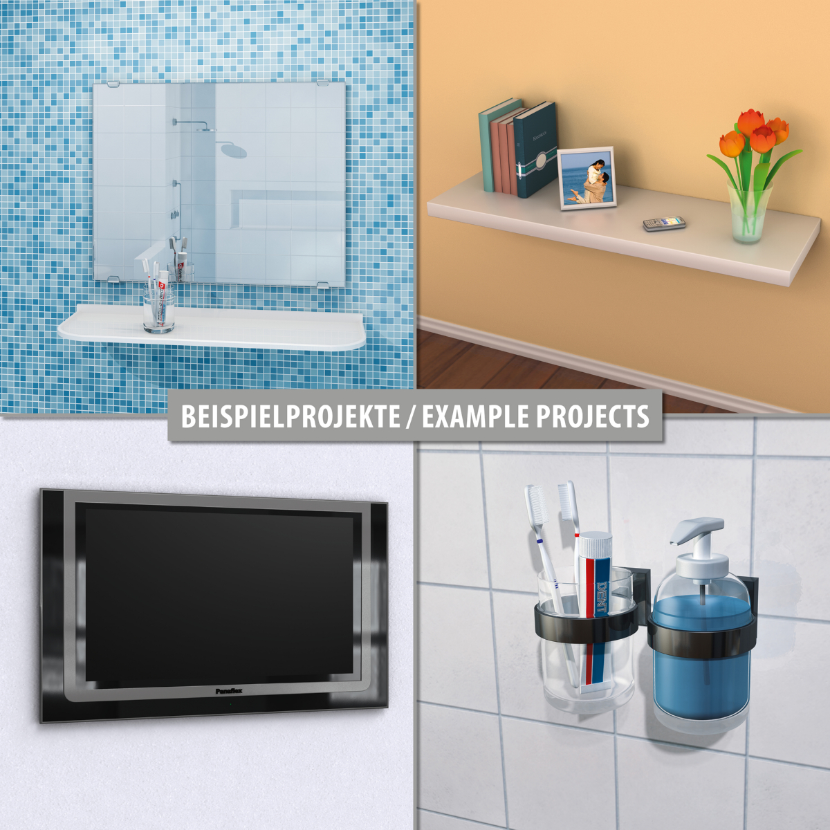 - Mindest-Schraubenlänge = Dübellänge + Anbauteildicke + 5 mm
