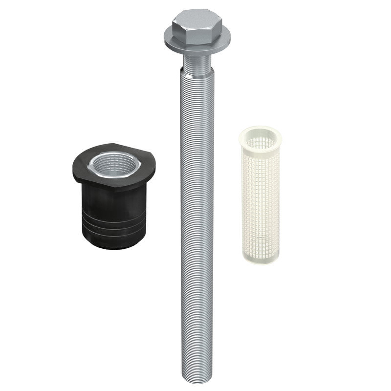 - Bohrloch im Untergrund zu 2/3 bzw. Siebhülse komplett mit Verbundmörtel befüllen