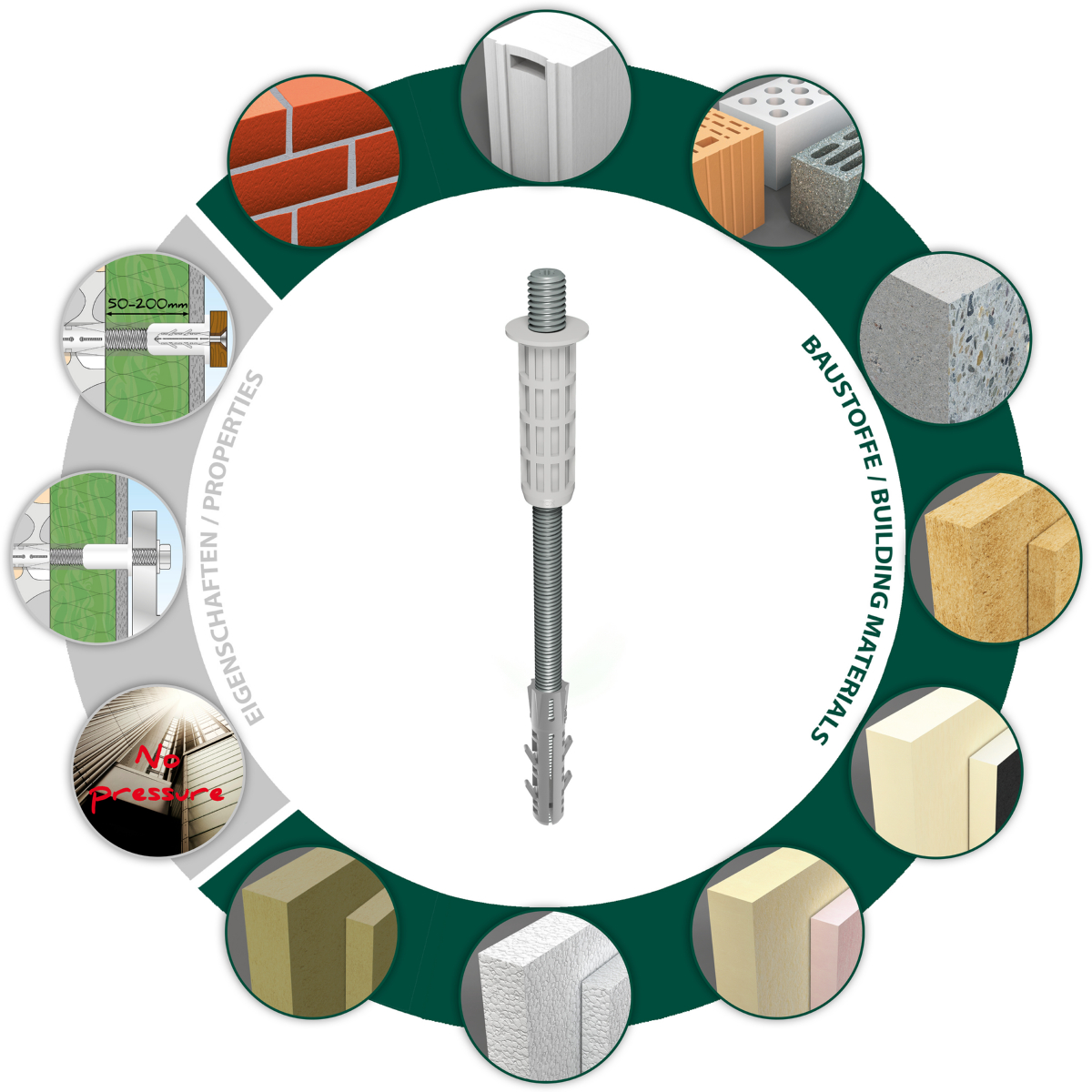 - Speziell auch für weiche Dämmstoffen wie z. B. Steinwolle