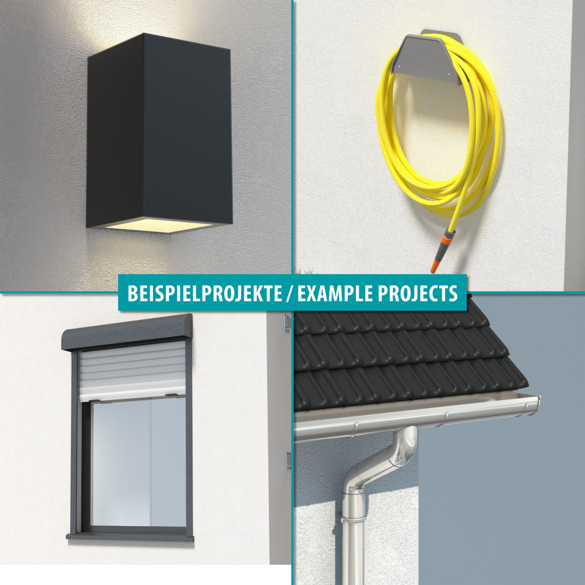 - Bei verwendung mit Montagegewindestift M10: Befestigung von z.B. Fallrohren
