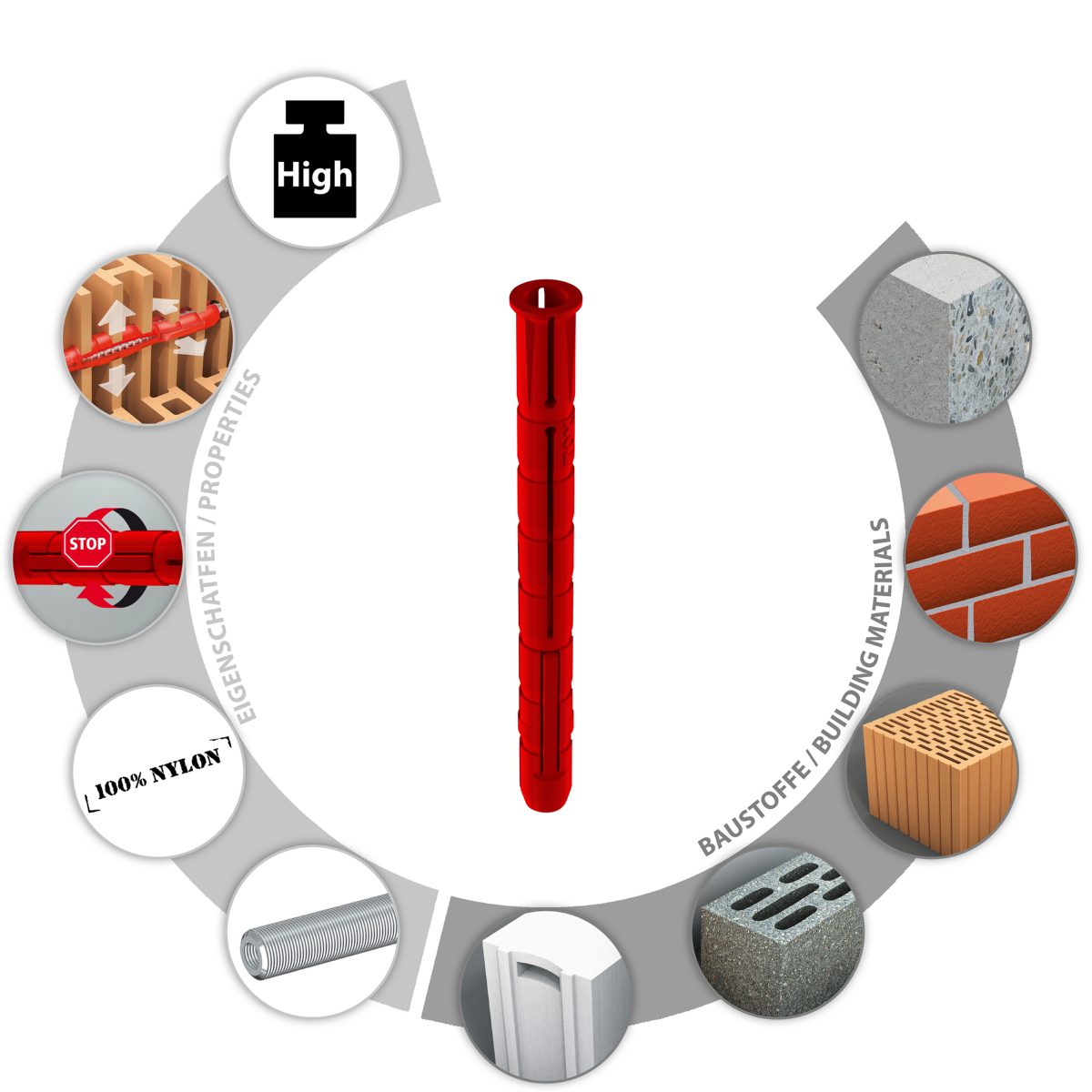 - Ideal für Lochstein (Poroton) und Porenbeton (Ytong)