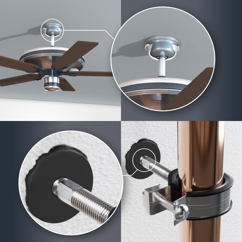 Ermöglicht wird der hohe Schallschutz und die Reduzierung von Schallbrücken durch die weiche Kautschuk-Ummantelung des Dübels und seinen Kragenbund. Sowohl im Innen- und Außenbereich als auch in angrenzenden Wohn- und Büroräumen wird eine Schallminderung erzielt und Lärmbelästigung vermieden. Der Dübel für Schallschutz ist mit einer integrierten Körperschallentkopplung ausgestattet, so dass keine zusätzlichen Entkopplungselemente verbaut werden müssen - das spart Platz und Zeit im Trocken- und Holzbau oder in der Gebäudetechnik! Der Sonic KB eignet sich für die Vorsteckmontage und durch seine hervorragende Schraubenführung auch für Schrauben mit Holzgewinde.